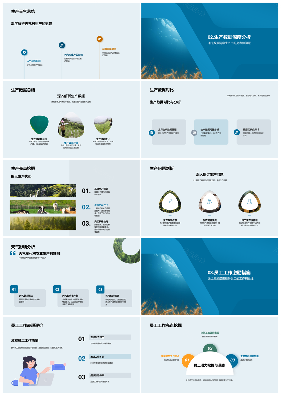 麦田生产月报管理策略天气数据员工展望PPT模板推荐