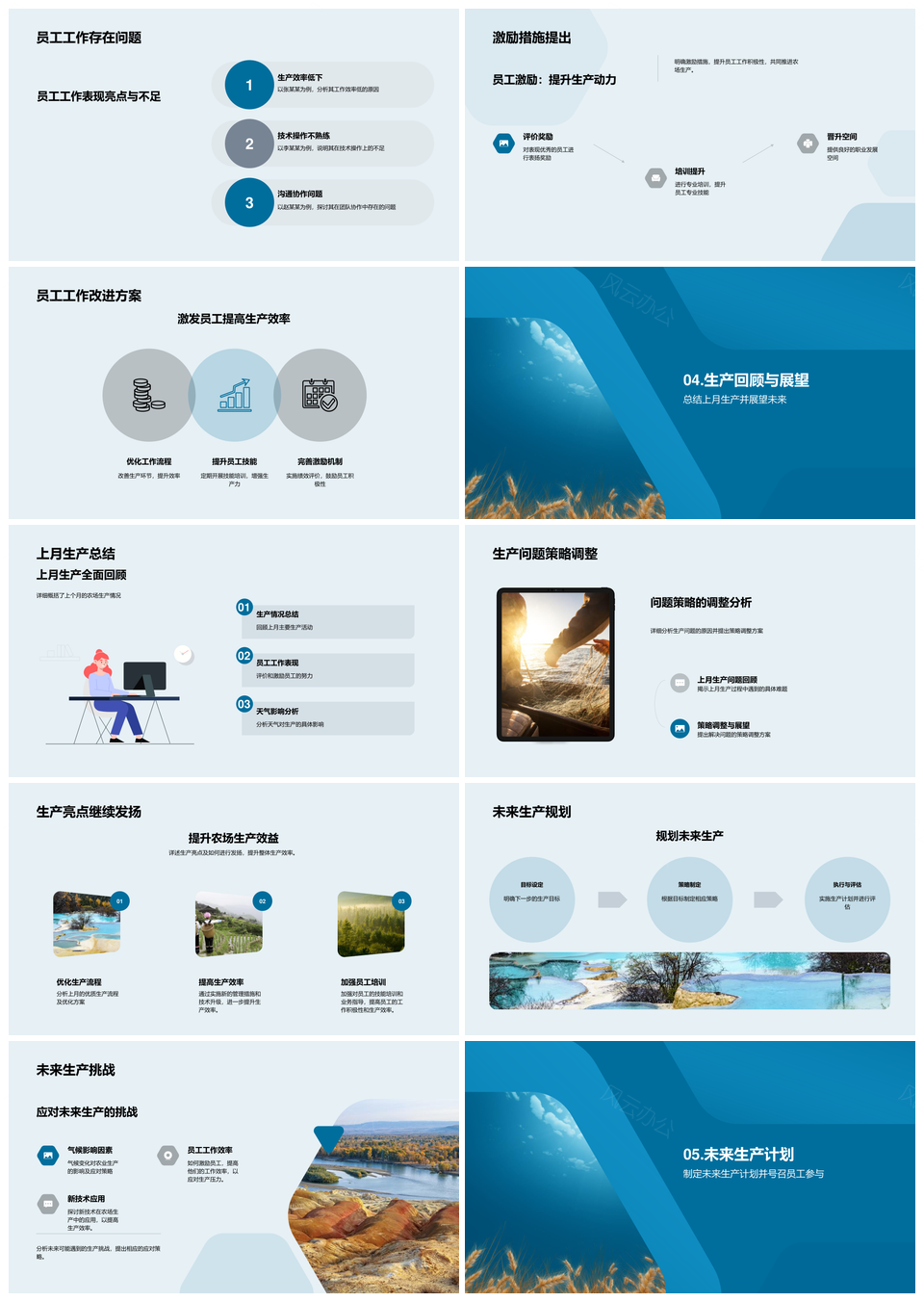这是一张麦田生产月报管理策略天气数据员工展望PPT模板,包含麦田、生产月报、管理策略、天气数据、员工展望等主题内容,也可用作麦田生产月报管理、生产月报管理策略、月报管理策略天气、管理策略天气数据、策略天气数据员工、天气数据员工展望、麦田生产月报、生产月报管理、月报管理策略、管理策略天气、策略天气数据、天气数据员工、数据员工展望、麦田生产、生产月报等PPT场景使用。 风云办公提供的麦田生产月报管理策略天气数据员工展望PPT模板,下载格式为pptx,一共33页,作品中文字及图均可以修改和编辑,图片更改请在作品中右键图片并更换,文字修改请直接点击文字进行修改。