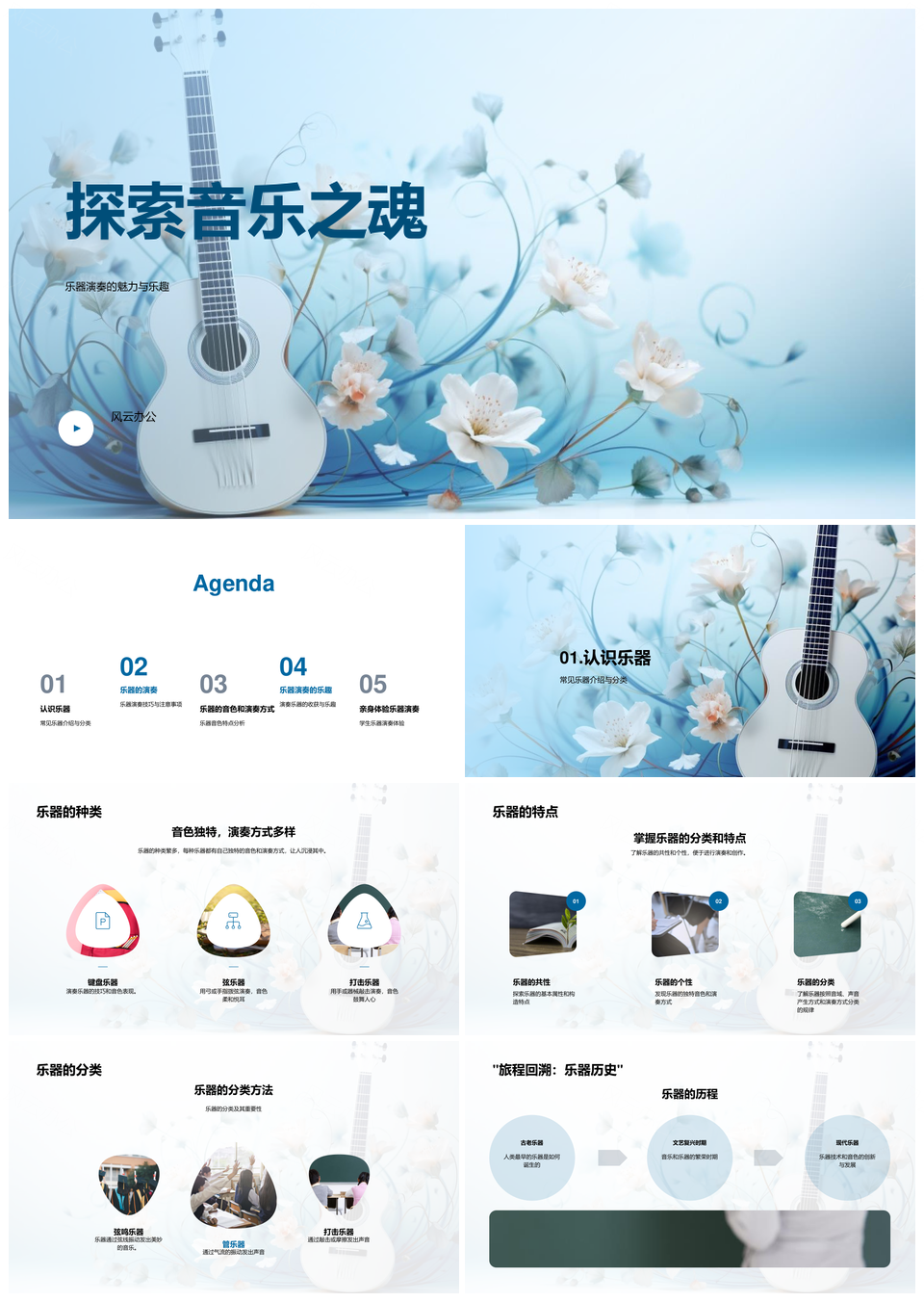 风云办公提供的探索小学音乐教育乐器种类演奏技巧PPT模板,下载格式为pptx,一共24页,作品中文字及图均可以修改和编辑,图片更改请在作品中右键图片并更换,文字修改请直接点击文字进行修改。