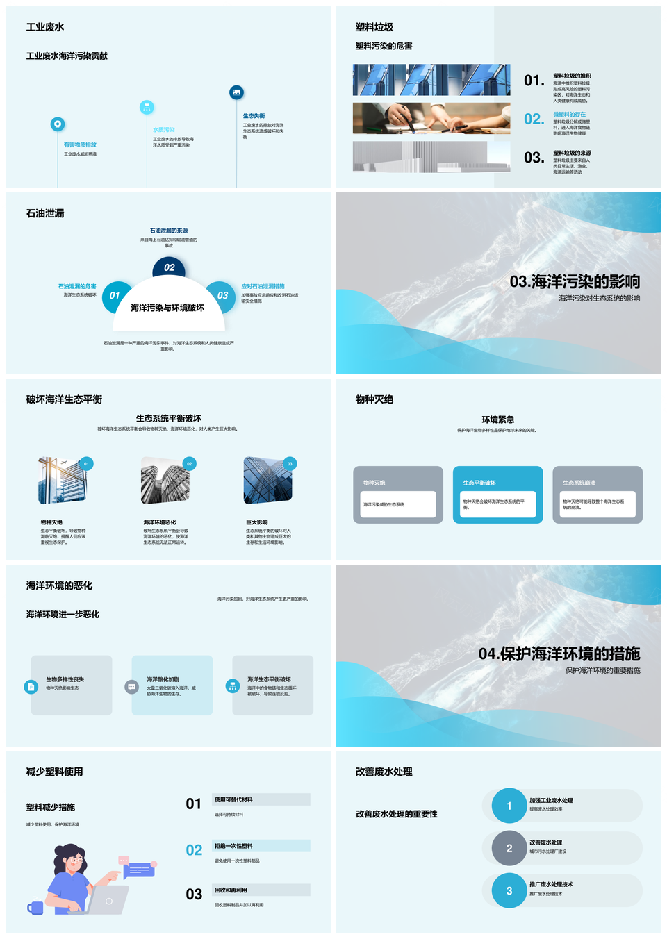 这是一张拯救海洋遏止废水塑料污染守护珊瑚生态PPT模板,包含拯救、海洋、遏止、废水、塑料、污染、守护、珊瑚、生态等主题内容,也可用作拯救海洋遏止废水塑料污染、遏止废水塑料污染守护珊瑚、拯救海洋遏止污染守护珊瑚、拯救海洋守护珊瑚生态、遏止塑料污染守护珊瑚生态、拯救海洋遏止废水污染、遏止废水污染守护生态、塑料污染守护珊瑚生态、拯救海洋遏止塑料污染、遏止废水塑料污染守护、拯救海洋守护生态遏止、守护珊瑚生态拯救海洋、拯救海洋遏止废水、遏止废水塑料污染、塑料污染守护珊瑚等PPT场景使用。 风云办公提供的拯救海洋遏止废水塑料污染守护珊瑚生态PPT模板,下载格式为pptx,一共27页,作品中文字及图均可以修改和编辑,图片更改请在作品中右键图片并更换,文字修改请直接点击文字进行修改。