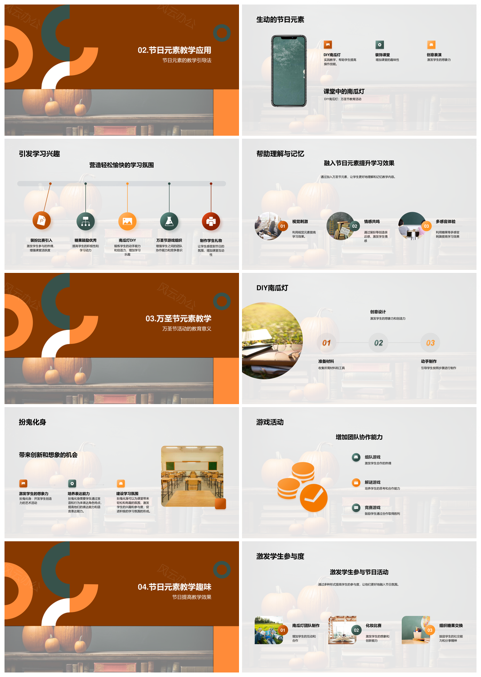 风云办公提供的万圣节元素教学应用提升学习兴趣PPT模板,下载格式为pptx,一共24页,作品中文字及图均可以修改和编辑,图片更改请在作品中右键图片并更换,文字修改请直接点击文字进行修改。