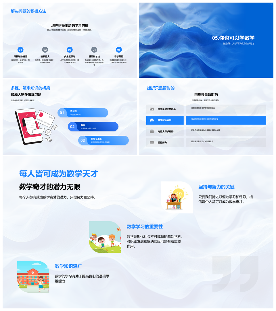 风云办公提供的实用数学思维提升与职业发展成果展PPT模板,下载格式为pptx,一共23页,作品中文字及图均可以修改和编辑,图片更改请在作品中右键图片并更换,文字修改请直接点击文字进行修改。