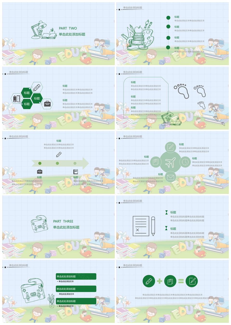 绿色黑板手绘风彩色教学课件开学典礼班队活动PPT模板