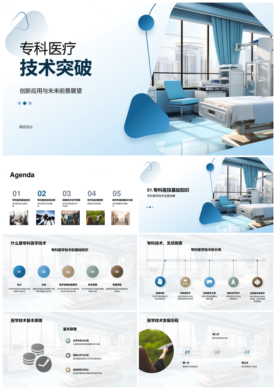风云办公提供的专科医疗技术创新突破应用前景PPT模板,下载格式为pptx,一共24页,作品中文字及图均可以修改和编辑,图片更改请在作品中右键图片并更换,文字修改请直接点击文字进行修改。