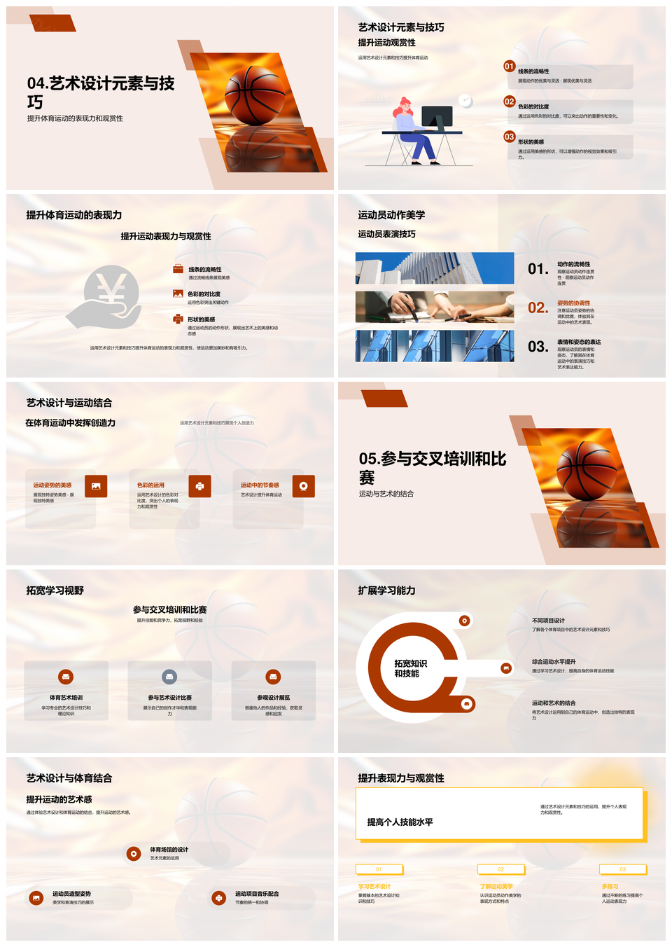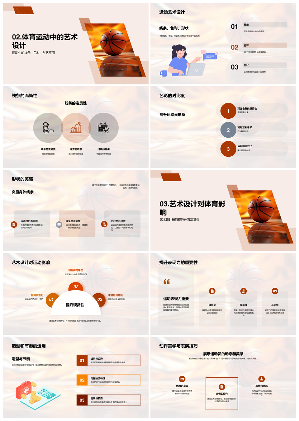 这是一张体育艺术设计元素技巧线条色彩造型PPT模板,包含体育、艺术、设计元素、技巧、线条、色彩、造型等主题内容,也可用作体育艺术设计元素、艺术设计元素技巧、设计元素技巧线条、元素技巧线条色彩、技巧线条色彩造型、体育艺术设计、艺术设计元素、设计元素技巧、元素技巧线条、技巧线条色彩、线条色彩造型、体育艺术、艺术设计、设计元素、元素技巧等PPT场景使用。