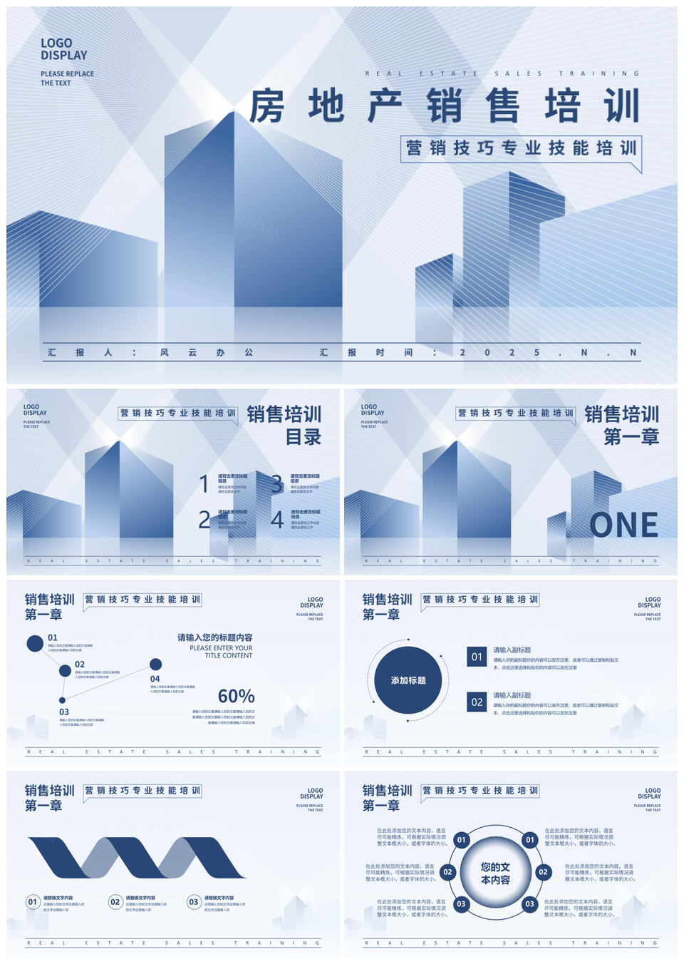 2025蓝色微立体房地产企业销售职场培训技能PPT模板