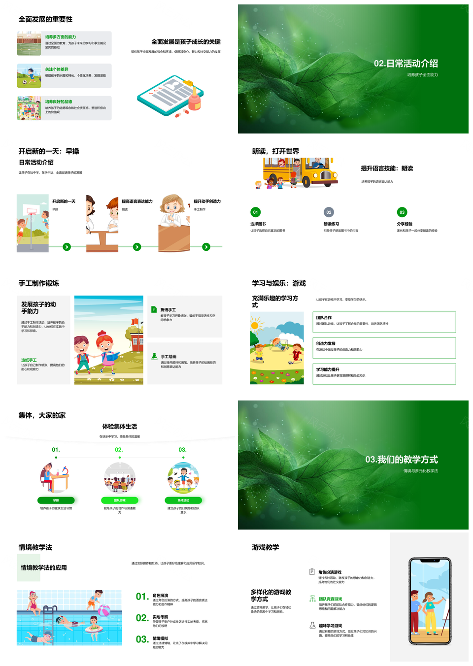 快乐学习全面发展游戏艺术体育最佳教育环境PPT模板