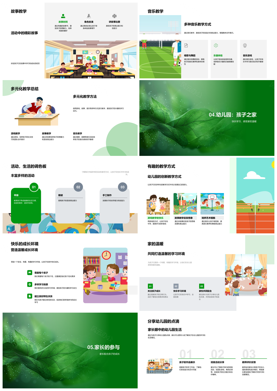 幼儿教育多元教学促进全面发展快乐学习PPT模板推荐