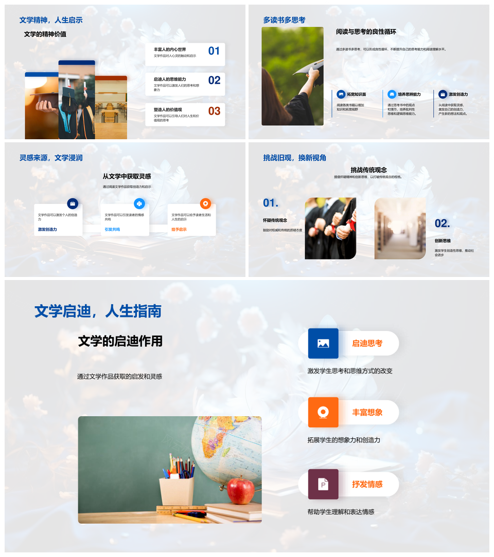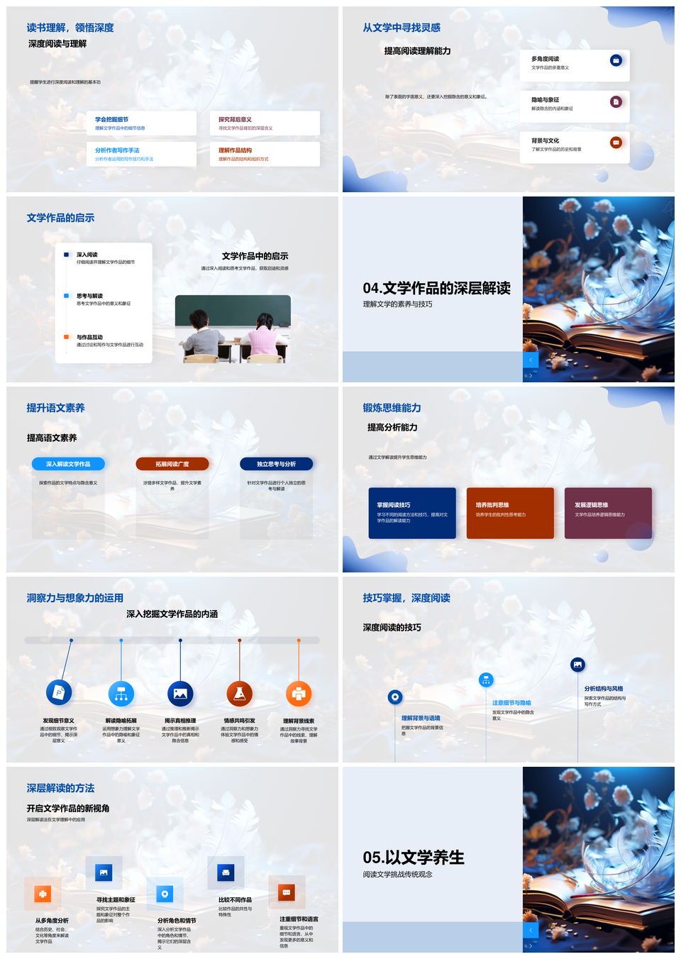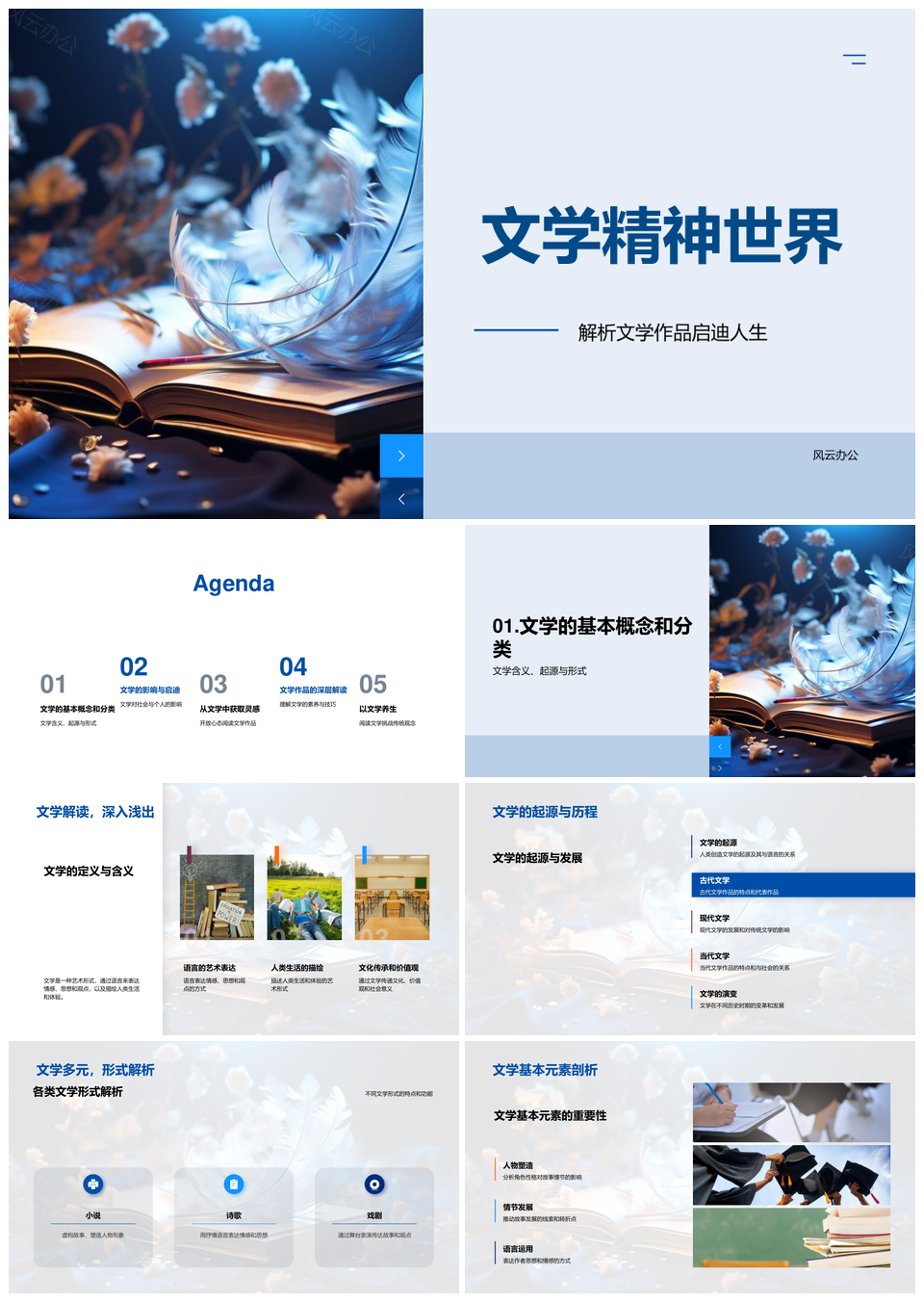 风云办公提供的文学精神探源开启人文素养PPT模板,下载格式为pptx,一共33页,作品中文字及图均可以修改和编辑,图片更改请在作品中右键图片并更换,文字修改请直接点击文字进行修改。