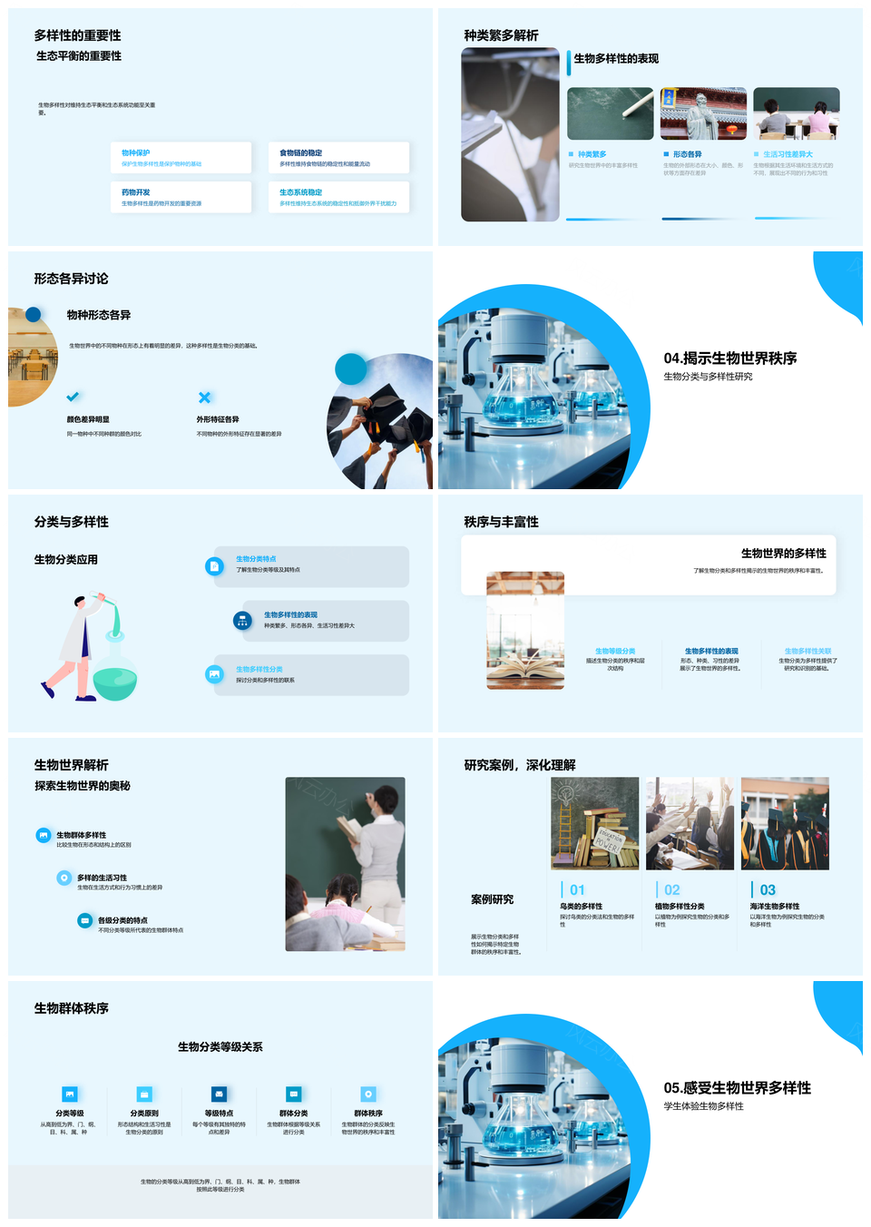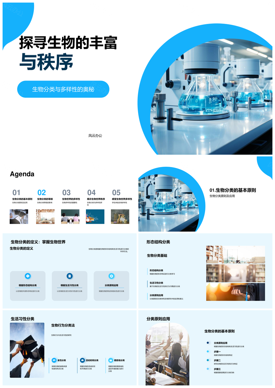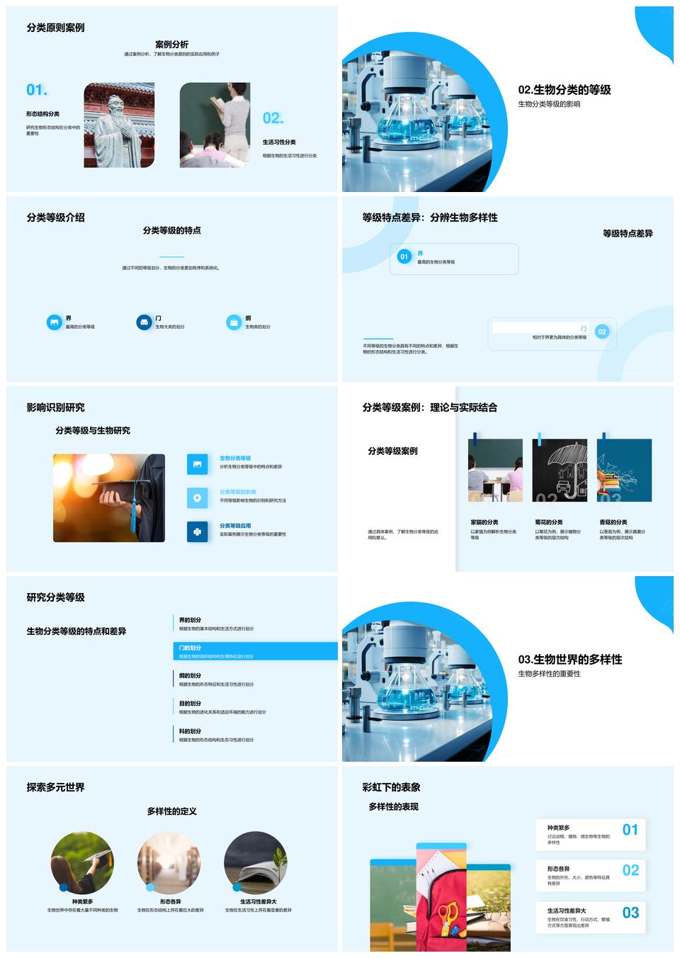 风云办公提供的生物多样分类等级与形态结构秩序PPT模板,下载格式为pptx,一共33页,作品中文字及图均可以修改和编辑,图片更改请在作品中右键图片并更换,文字修改请直接点击文字进行修改。