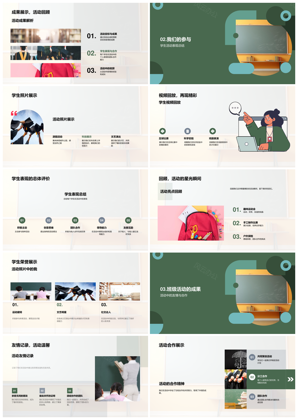 这是一张快乐时光班级活动回顾展望同窗友情成果PPT模板,包含快乐时光、班级活动、回顾、展望、同窗、友情、成果等主题内容,也可用作快乐时光班级活动回顾展望、班级活动回顾展望同窗友情、回顾展望同窗友情成果、快乐时光班级活动同窗友情、快乐时光回顾展望同窗友情、班级活动同窗友情成果、快乐时光同窗友情成果、快乐时光班级活动成果、班级活动回顾同窗友情、回顾同窗友情成果、快乐时光回顾展望、班级活动展望成果、同窗友情成果回顾、快乐时光班级活动、班级活动展望、回顾展望、展望成果等PPT场景使用。 风云办公提供的快乐时光班级活动回顾展望同窗友情成果PPT模板,下载格式为pptx,一共33页,作品中文字及图均可以修改和编辑,图片更改请在作品中右键图片并更换,文字修改请直接点击文字进行修改。