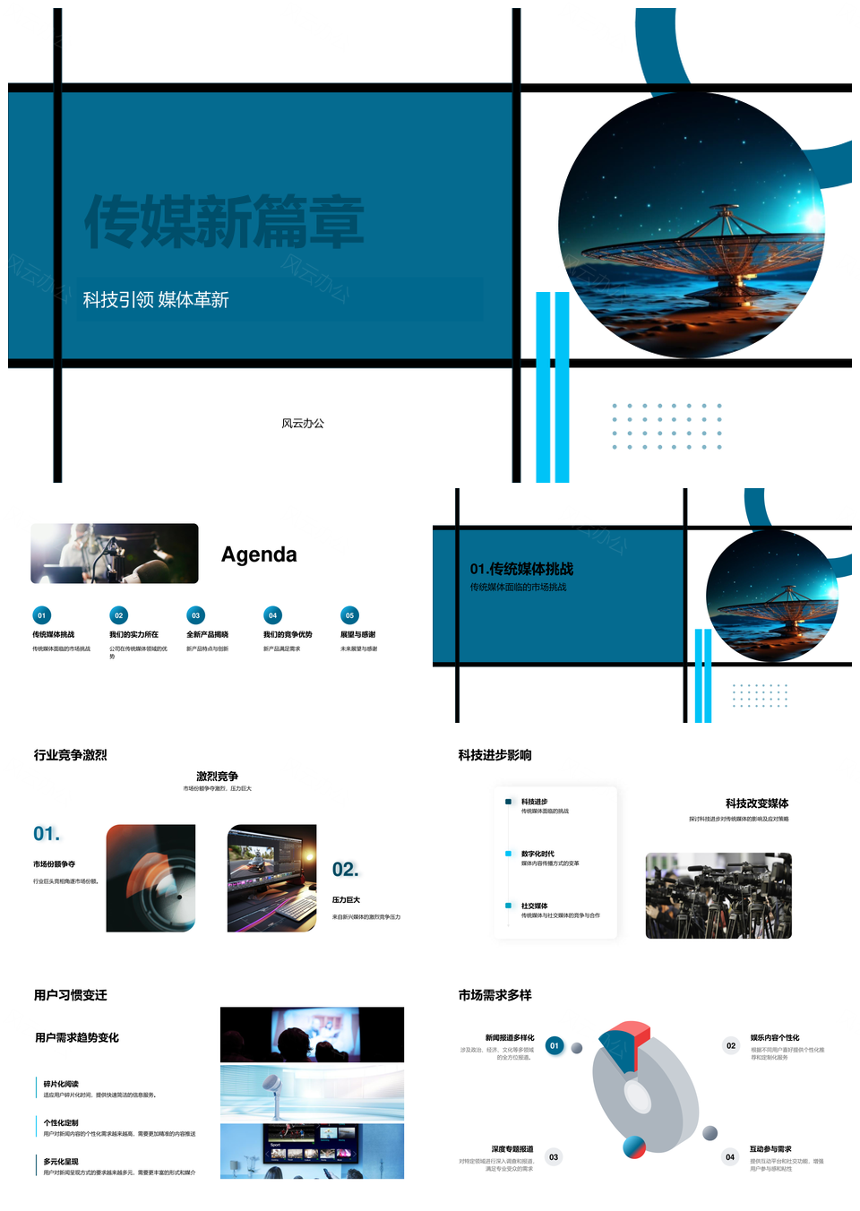 风云办公提供的科技引领传媒革新卫星天线启新章PPT模板,下载格式为pptx,一共29页,作品中文字及图均可以修改和编辑,图片更改请在作品中右键图片并更换,文字修改请直接点击文字进行修改。