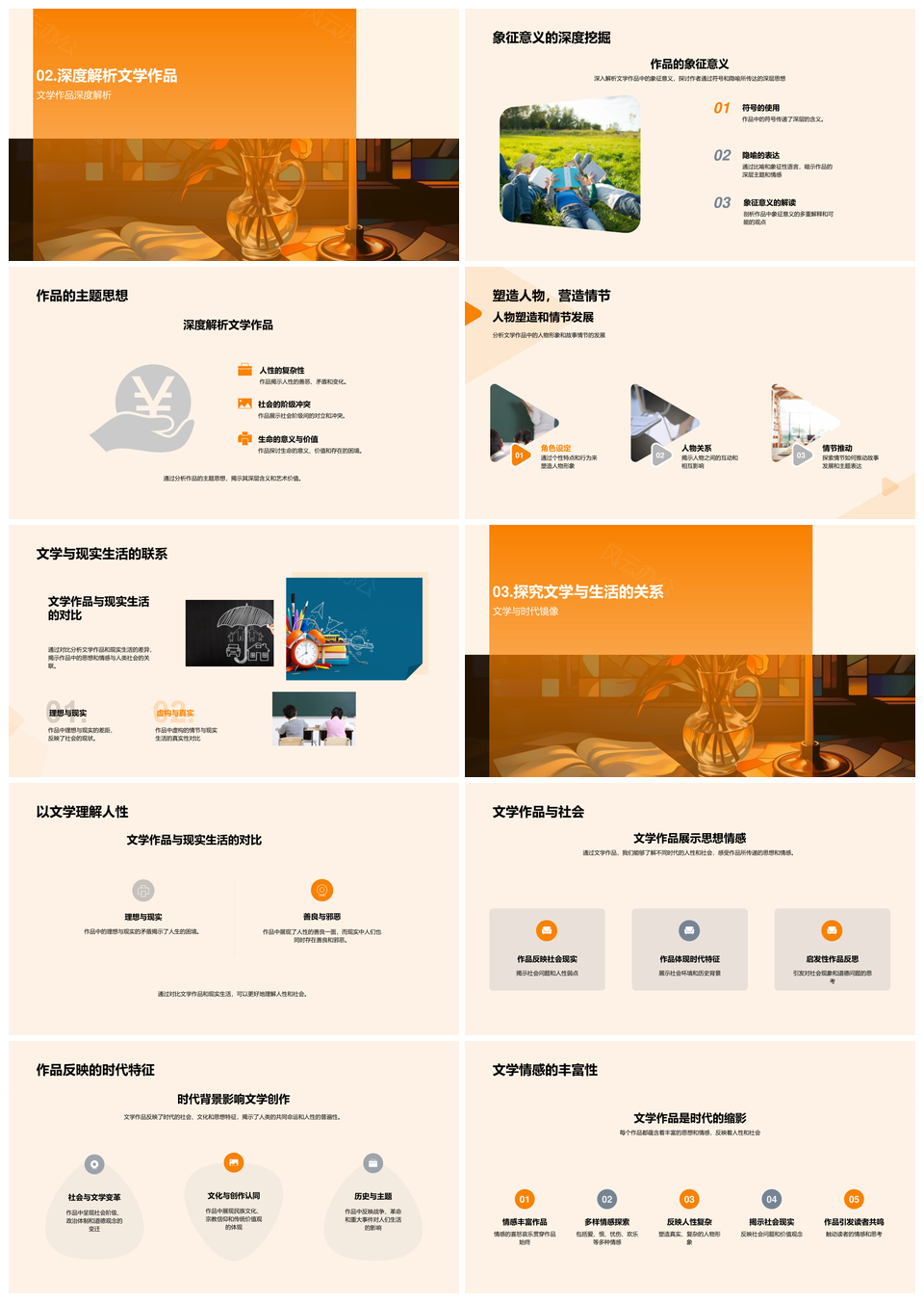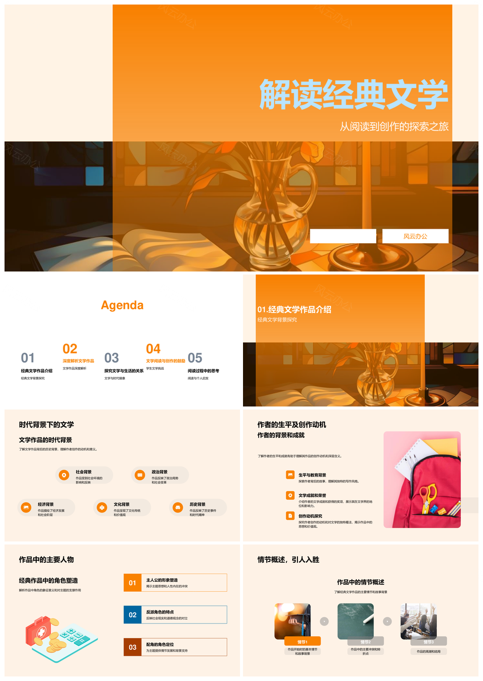 风云办公提供的经典文学作品时代创作动机主题解析PPT模板,下载格式为pptx,一共28页,作品中文字及图均可以修改和编辑,图片更改请在作品中右键图片并更换,文字修改请直接点击文字进行修改。