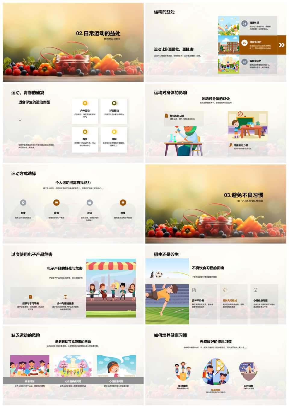 学生健康生活习惯充足睡眠平衡饮食运动强身PPT模板