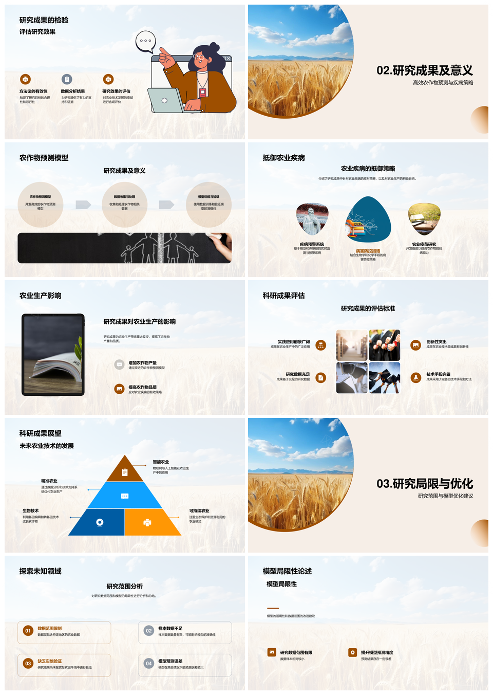 农业技术研究挑战与小麦田模型疾病策略成果PPT模板推荐