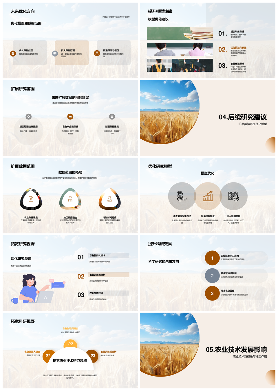 这是一张农业技术研究挑战与小麦田模型疾病策略成果PPT模板,包含农业技术、研究挑战、小麦田、模型、疾病、策略、成果等主题内容,也可用作农业技术研究挑战、小麦田模型疾病策略、模型疾病策略成果、农业技术挑战小麦田、研究挑战模型疾病、小麦田模型策略成果、农业技术研究模型、农业技术策略成果、研究模型疾病策略、挑战小麦田模型、模型疾病挑战、疾病策略挑战、农业技术疾病策略、研究成果模型疾病、小麦田策略成果等PPT场景使用。 风云办公提供的农业技术研究挑战与小麦田模型疾病策略成果PPT模板,下载格式为pptx,一共33页,作品中文字及图均可以修改和编辑,图片更改请在作品中右键图片并更换,文字修改请直接点击文字进行修改。