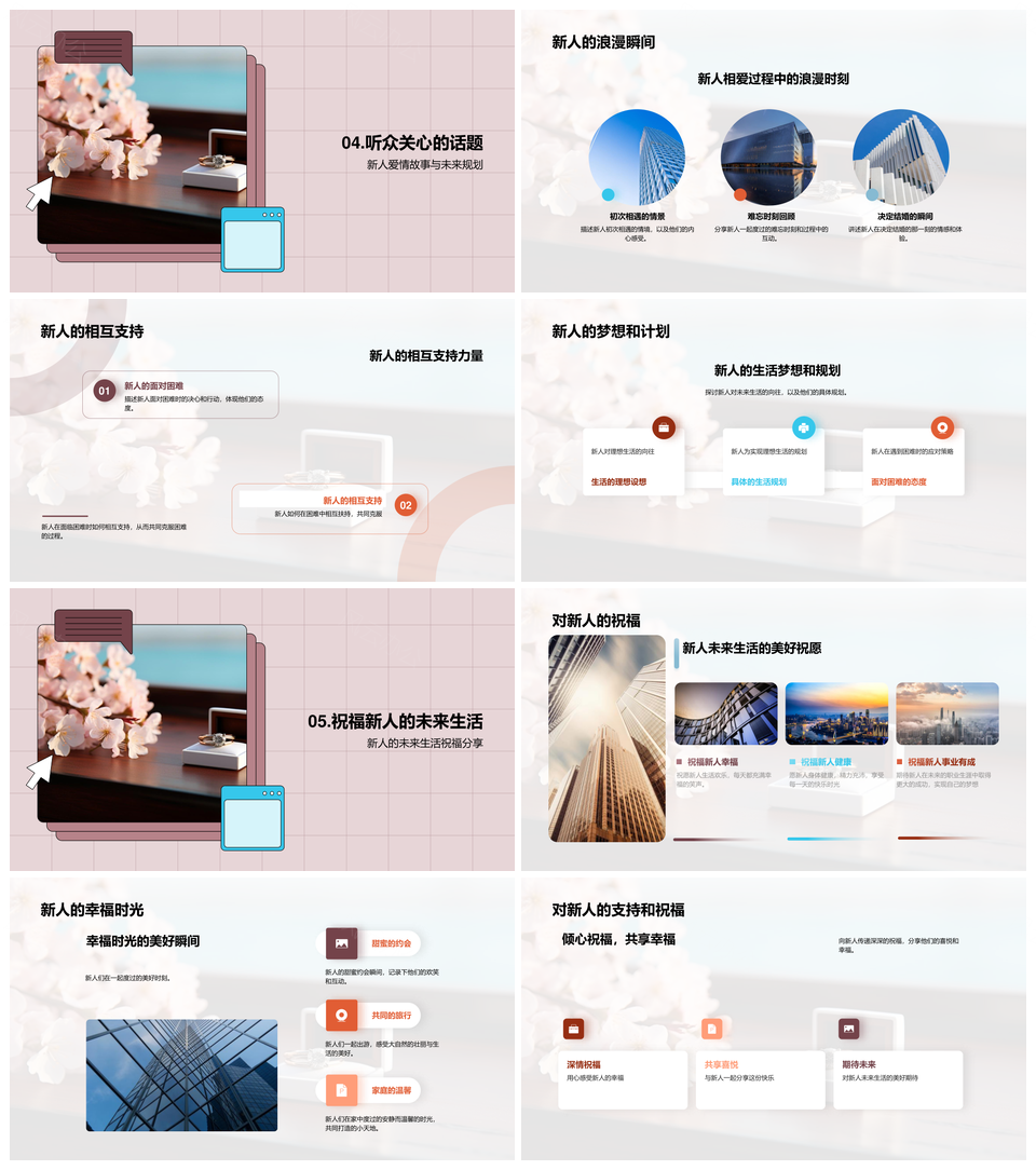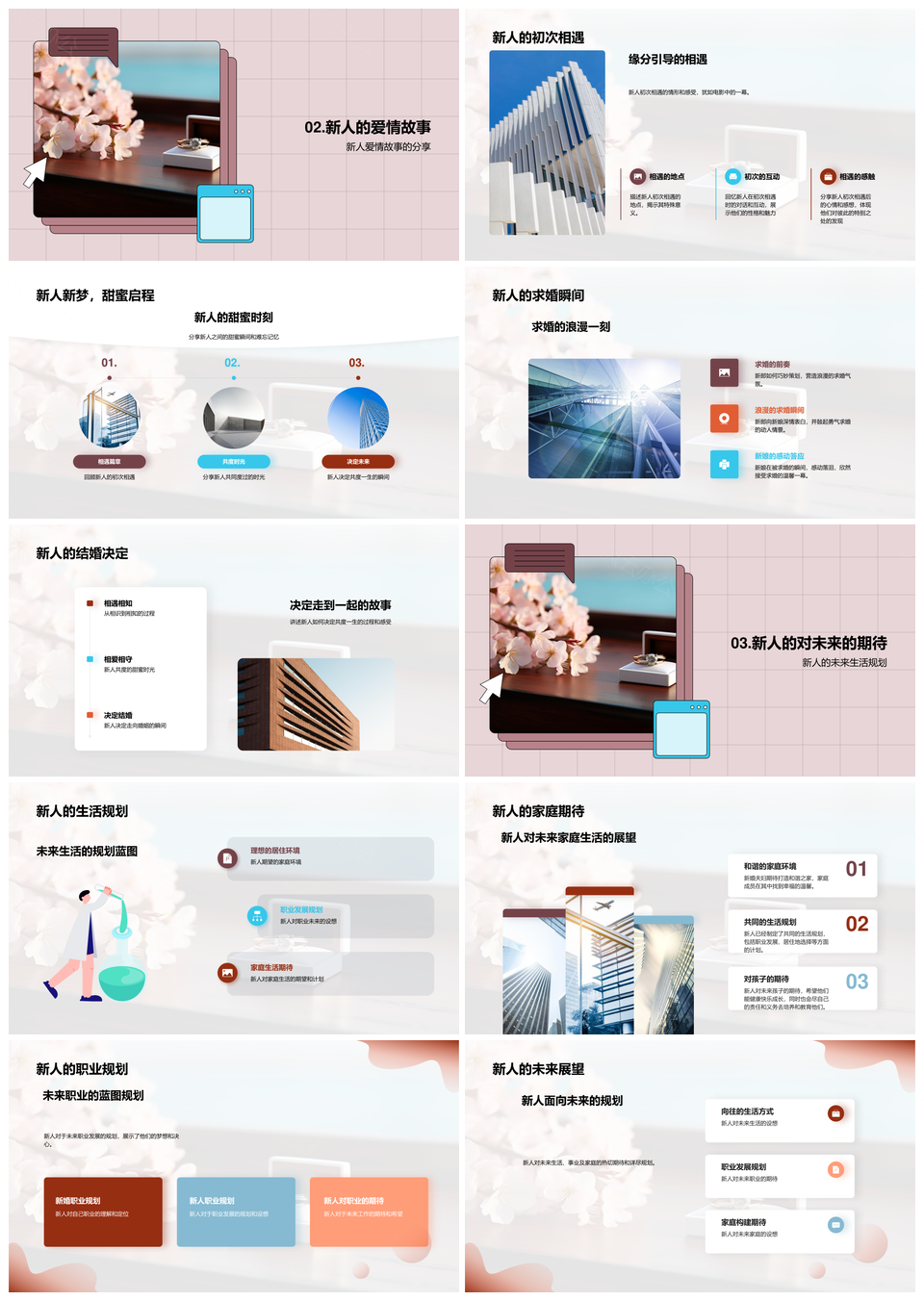 这是一张新人学习工作相遇婚戒开启幸福婚礼新篇章PPT模板,包含新人、学习、工作、相遇、婚戒、开启、幸福、婚礼、新篇章等主题内容,也可用作新人学习工作相遇、婚戒开启幸福婚礼、开启幸福婚礼新篇章、新人学习工作、学习工作相遇、相遇婚戒开启、婚戒开启幸福、开启幸福婚礼、幸福婚礼新篇章、新人学习、学习工作、工作相遇、相遇婚戒、婚戒开启、开启幸福等PPT场景使用。 风云办公提供的新人学习工作相遇婚戒开启幸福婚礼新篇章PPT模板,下载格式为pptx,一共26页,作品中文字及图均可以修改和编辑,图片更改请在作品中右键图片并更换,文字修改请直接点击文字进行修改。