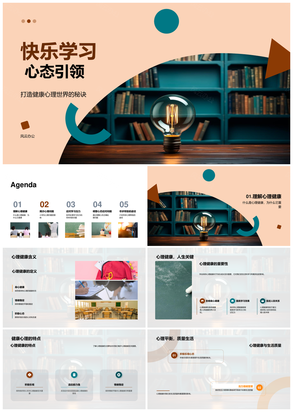 风云办公提供的快乐学习心书引领小学生心理健康PPT模板,下载格式为pptx,一共28页,作品中文字及图均可以修改和编辑,图片更改请在作品中右键图片并更换,文字修改请直接点击文字进行修改。