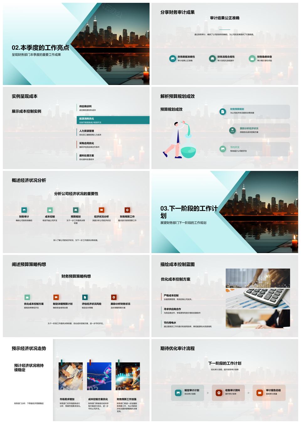 这是一张季度财务管控审计预算分析总结展望PPT模板,包含季度、财务、管控、审计、预算、分析、总结、展望等主题内容,也可用作季度财务管控审计、财务管控审计预算、管控审计预算分析、审计预算分析总结、预算分析总结展望、季度财务管控、财务管控审计、管控审计预算、审计预算分析、预算分析总结、分析总结展望、季度财务、财务管控、管控审计、审计预算等PPT场景使用。