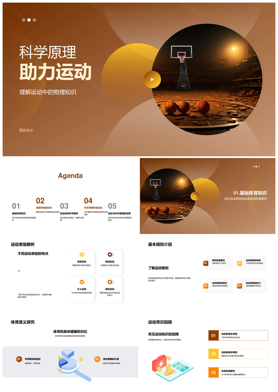 物理知识解析运动类型规则与篮球框应用PPT模板推荐