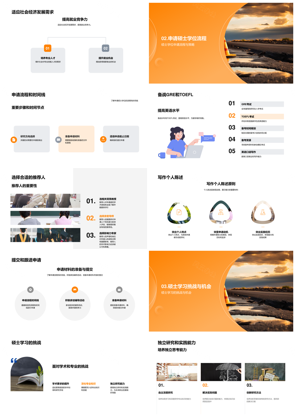 风云办公提供的硕士申请研究能力与职业发展指引PPT模板,下载格式为pptx,一共33页,作品中文字及图均可以修改和编辑,图片更改请在作品中右键图片并更换,文字修改请直接点击文字进行修改。