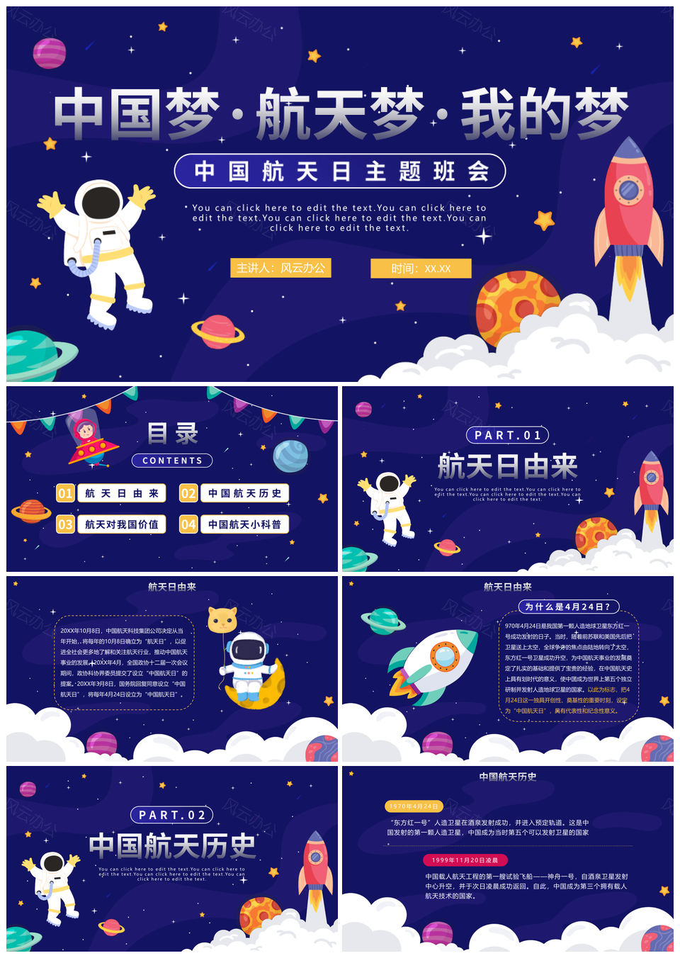 风云办公提供的清新卡通手绘航天科普班会PPT模板,下载格式为pptx,一共16页,作品中文字及图均可以修改和编辑,图片更改请在作品中右键图片并更换,文字修改请直接点击文字进行修改。
