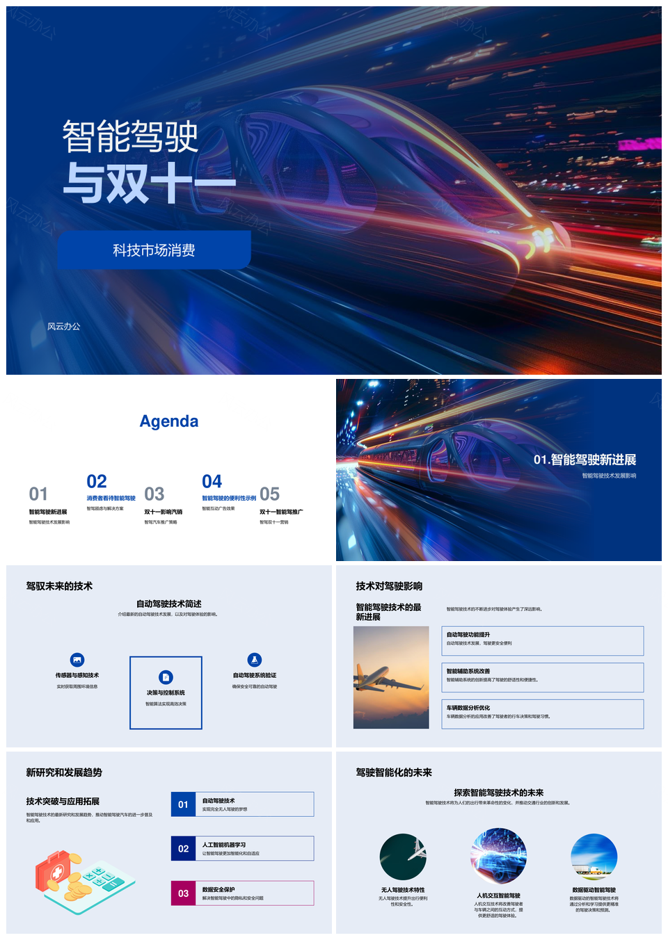 风云办公提供的智能驾驶双十一驱动科技消费新趋势PPT模板,下载格式为pptx,一共33页,作品中文字及图均可以修改和编辑,图片更改请在作品中右键图片并更换,文字修改请直接点击文字进行修改。