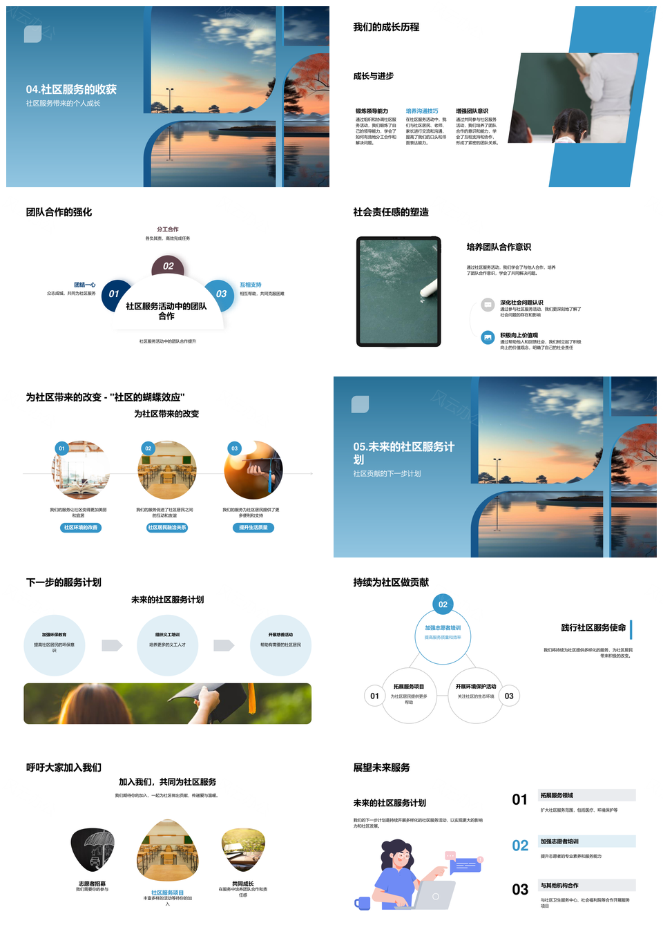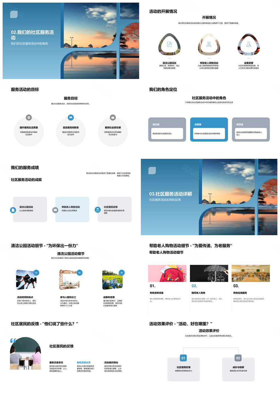 风云办公提供的社区服务实践助老清园规划未来PPT模板,下载格式为pptx,一共28页,作品中文字及图均可以修改和编辑,图片更改请在作品中右键图片并更换,文字修改请直接点击文字进行修改。