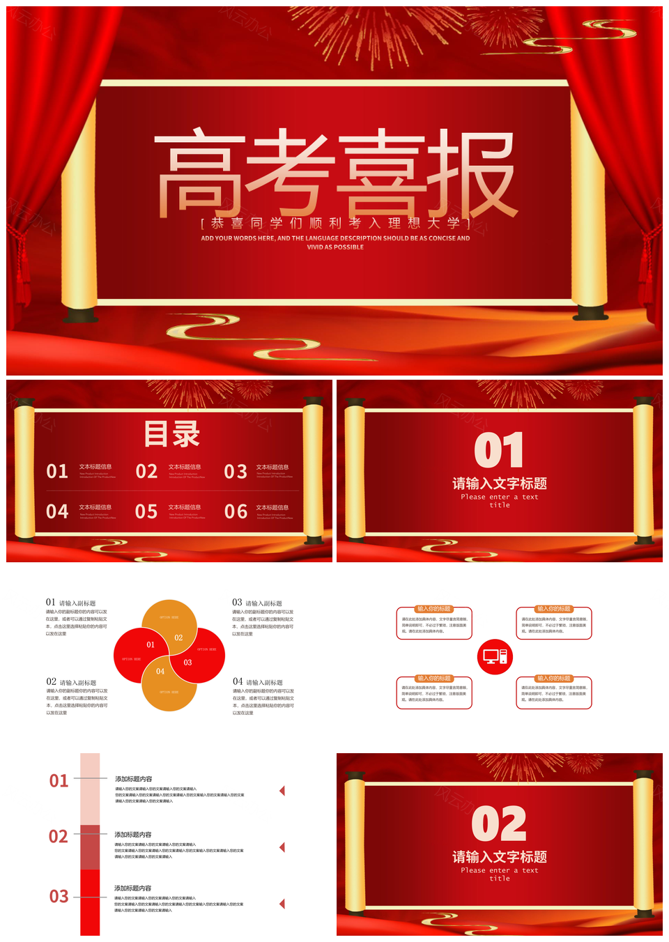 风云办公提供的红色奢华风学校高考喜报庆典PPT模板,下载格式为pptx,一共25页,作品中文字及图均可以修改和编辑,图片更改请在作品中右键图片并更换,文字修改请直接点击文字进行修改。