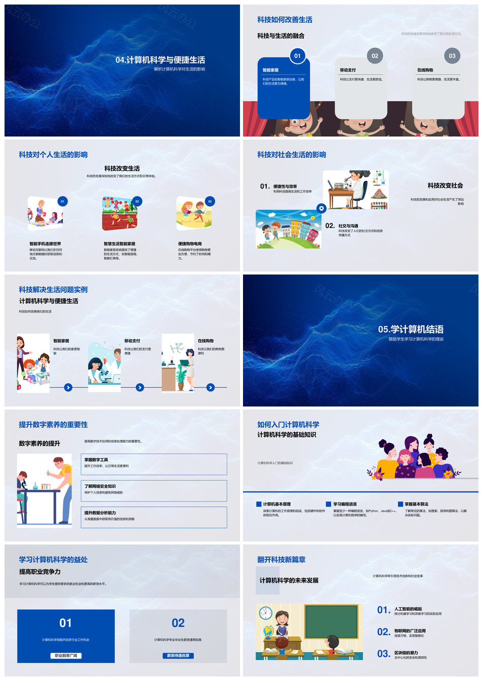 这是一张计算机科学生活应用技术原理与软硬件网络算法PPT模板,包含计算机科学、生活应用、技术原理、软硬件、网络、算法等主题内容,也可用作计算机科学生活应用技术原理、计算机科学生活应用技术、计算机科学生活应用软硬件、计算机科学生活技术原理、计算机科学应用技术原理、计算机应用技术原理软硬件、应用技术原理软硬件网络、技术原理软硬件网络算法、原理软硬件网络算法计算机、软硬件网络算法科学应用、计算机科学生活软硬件、计算机生活应用技术、应用技术软硬件网络、软硬件网络算法原理、技术原理网络算法应用等PPT场景使用。 风云办公提供的计算机科学生活应用技术原理与软硬件网络算法PPT模板,下载格式为pptx,一共28页,作品中文字及图均可以修改和编辑,图片更改请在作品中右键图片并更换,文字修改请直接点击文字进行修改。