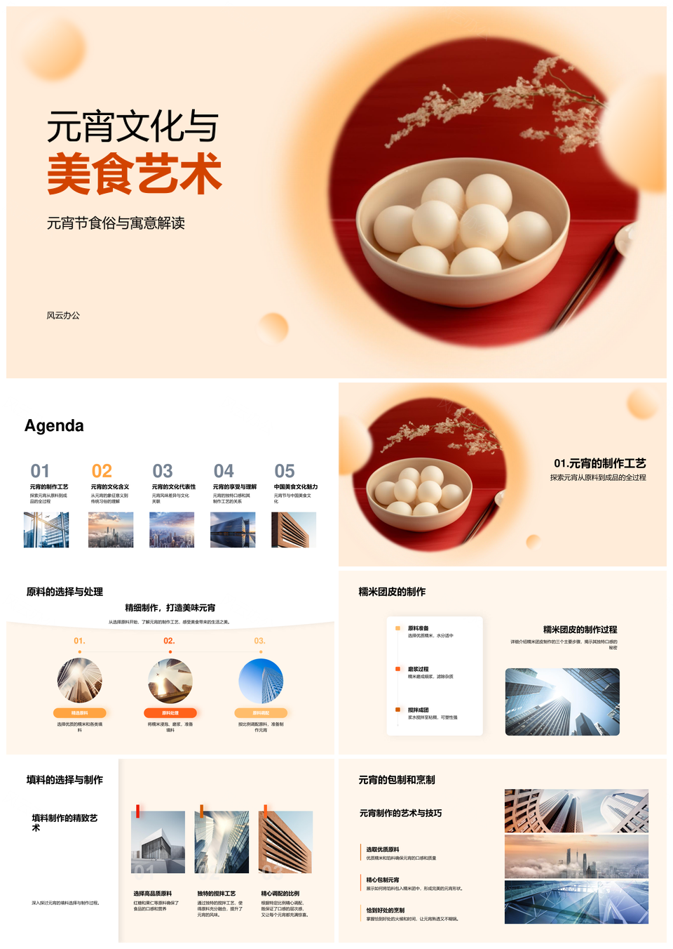 风云办公提供的元宵节糯米团皮包制团圆习俗PPT模板,下载格式为pptx,一共22页,作品中文字及图均可以修改和编辑,图片更改请在作品中右键图片并更换,文字修改请直接点击文字进行修改。