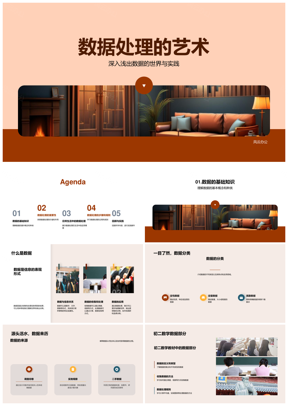 风云办公提供的初二数学数据处理分析与调研决策PPT模板,下载格式为pptx,一共33页,作品中文字及图均可以修改和编辑,图片更改请在作品中右键图片并更换,文字修改请直接点击文字进行修改。