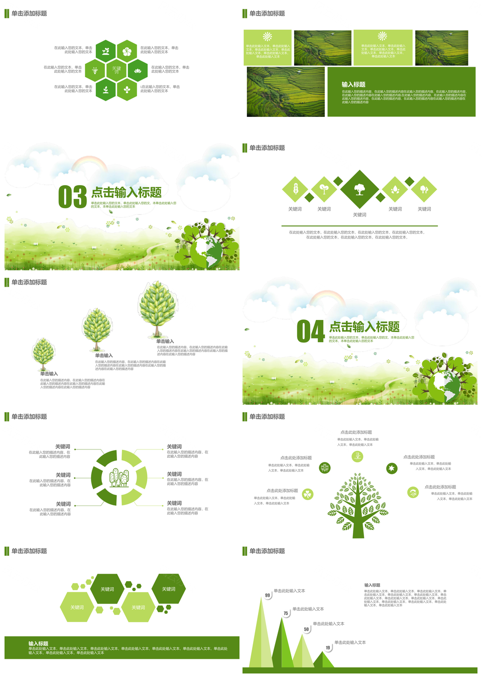 这是一张文艺清新绿色环保通用PPT模板,包含文艺、清新、绿色、环保等主题内容,也可用作文艺清新绿色环保、清新绿色环保通用、文艺清新绿色、清新绿色环保、绿色环保通用、文艺清新、清新绿色、绿色环保、环保通用等PPT场景使用。 风云办公提供的文艺清新绿色环保通用PPT模板,下载格式为pptx,一共18页,作品中文字及图均可以修改和编辑,图片更改请在作品中右键图片并更换,文字修改请直接点击文字进行修改。