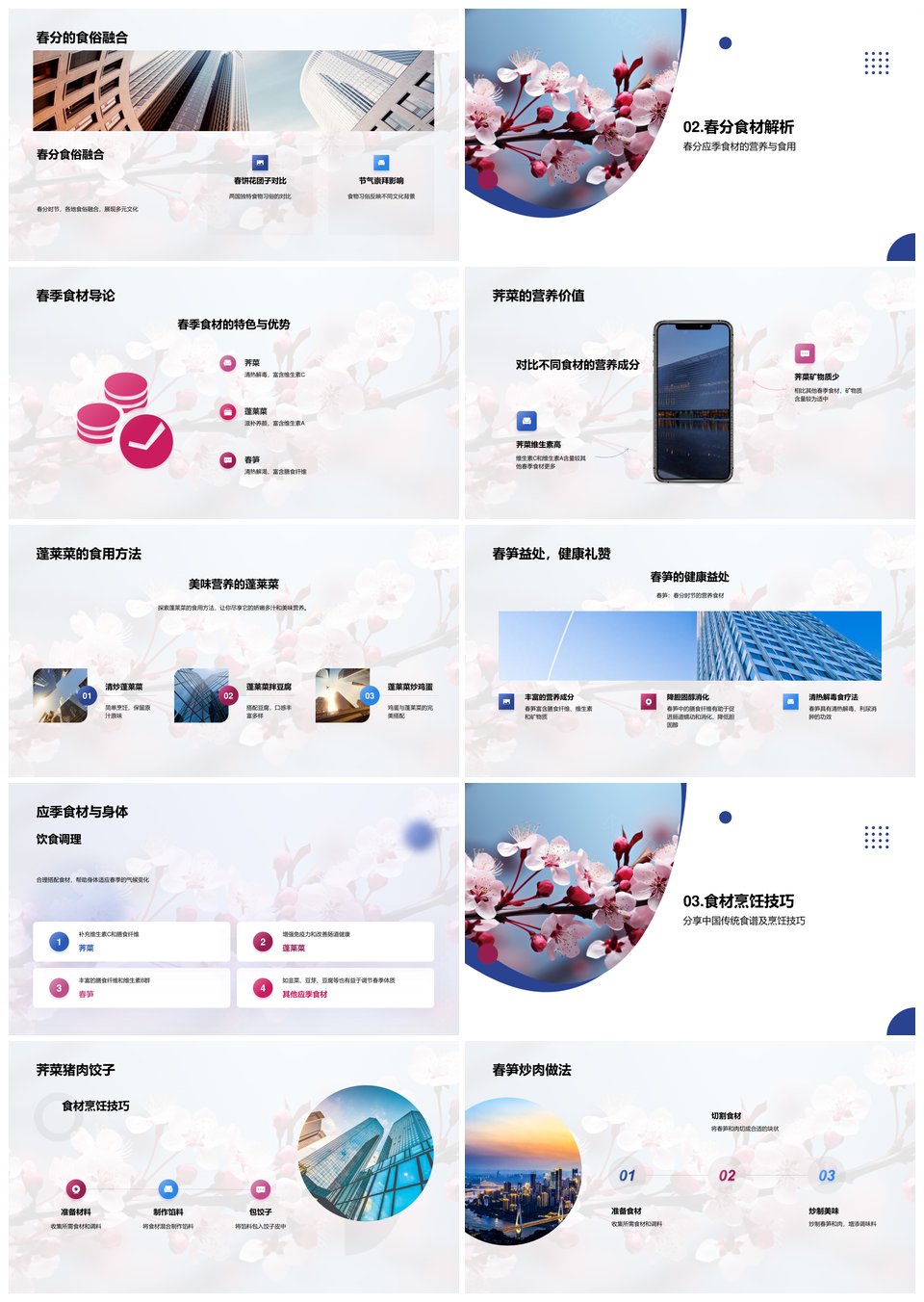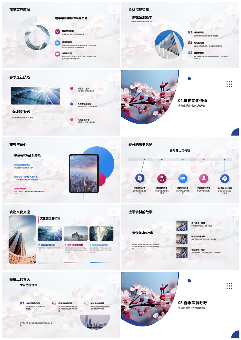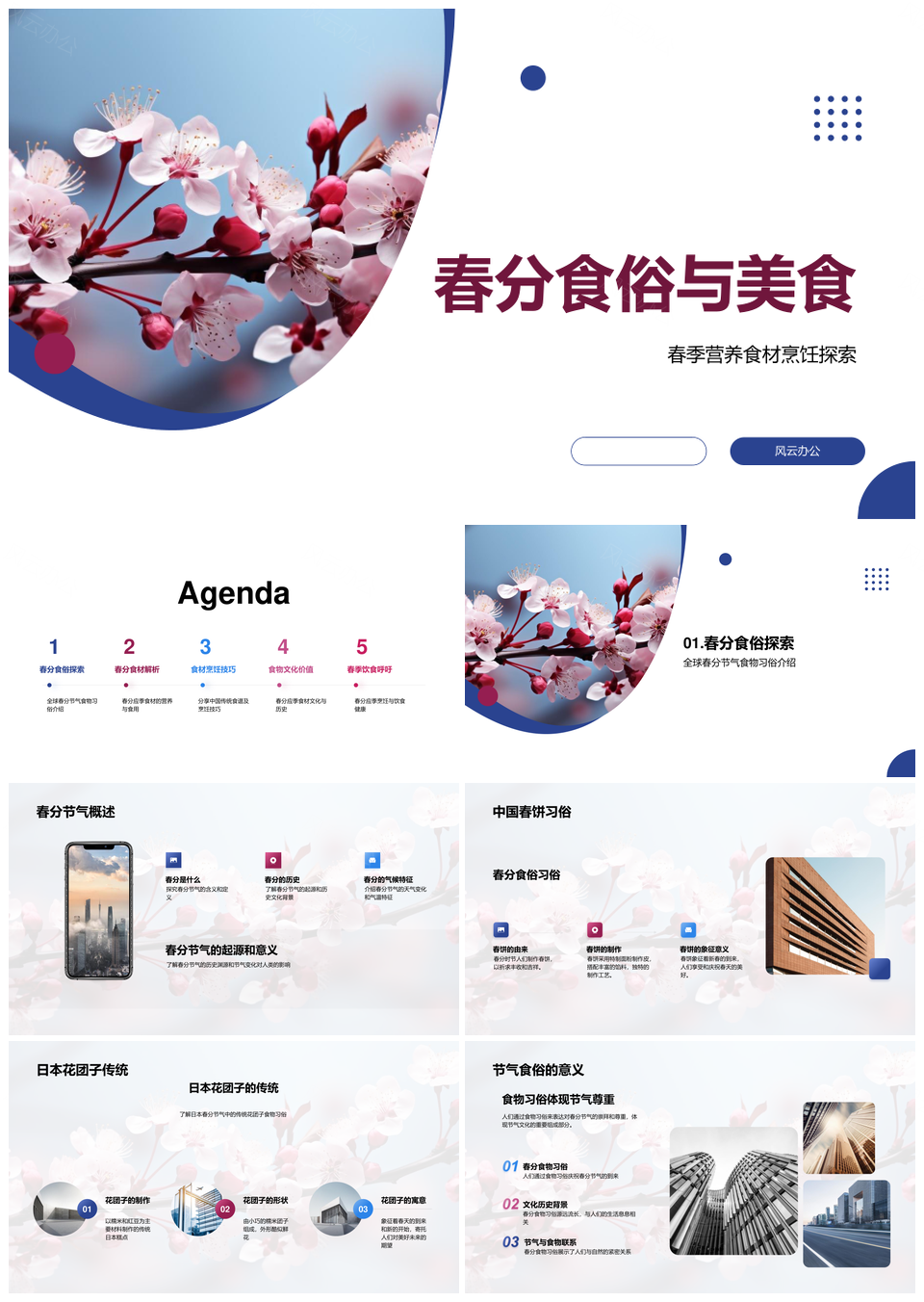 风云办公提供的春分食俗中日春饼花团子应季美食PPT模板,下载格式为pptx,一共33页,作品中文字及图均可以修改和编辑,图片更改请在作品中右键图片并更换,文字修改请直接点击文字进行修改。