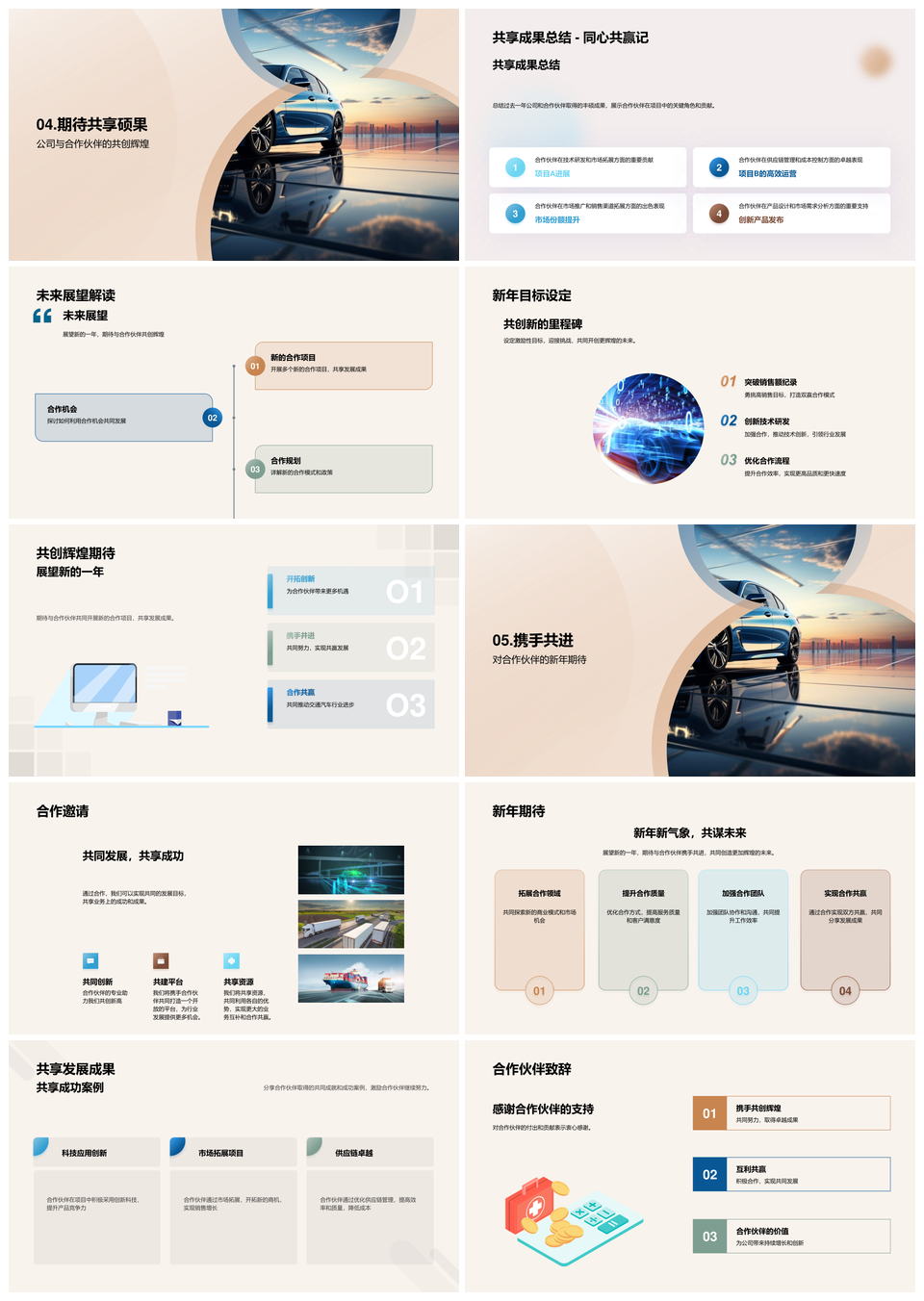 这是一张合作伙伴年会汽车业总裁表彰成功案例PPT模板,包含合作伙伴、年会、汽车业、总裁、表彰、成功、案例等主题内容,也可用作合作伙伴年会汽车业总裁表彰成功案例、合作伙伴年会汽车业总裁、合作伙伴年会总裁表彰、汽车业总裁表彰成功案例、年会汽车业总裁表彰、合作伙伴汽车业总裁表彰、总裁表彰成功案例、合作伙伴年会表彰成功、汽车业总裁表彰、合作伙伴年会汽车业、年会表彰成功案例、合作伙伴总裁表彰、汽车业总裁、合作伙伴年会、表彰成功案例等PPT场景使用。
