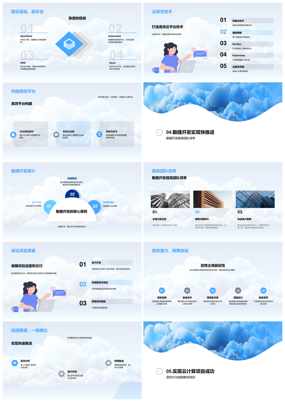 风云办公提供的技术主管领航云原生敏捷开发项目管理PPT模板,下载格式为pptx,一共33页,作品中文字及图均可以修改和编辑,图片更改请在作品中右键图片并更换,文字修改请直接点击文字进行修改。