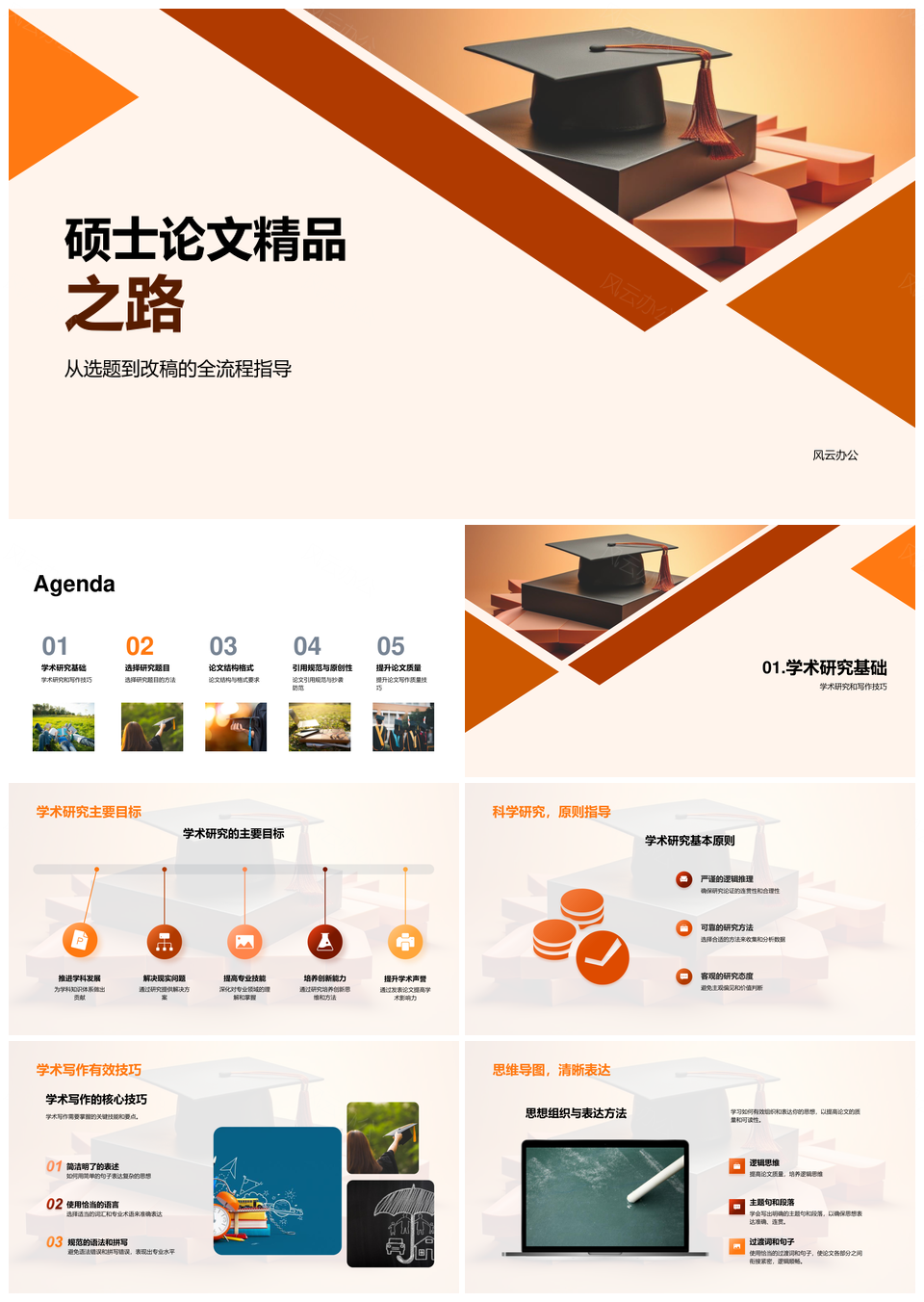 风云办公提供的硕士论文写作规范与原创研究指南PPT模板,下载格式为pptx,一共33页,作品中文字及图均可以修改和编辑,图片更改请在作品中右键图片并更换,文字修改请直接点击文字进行修改。