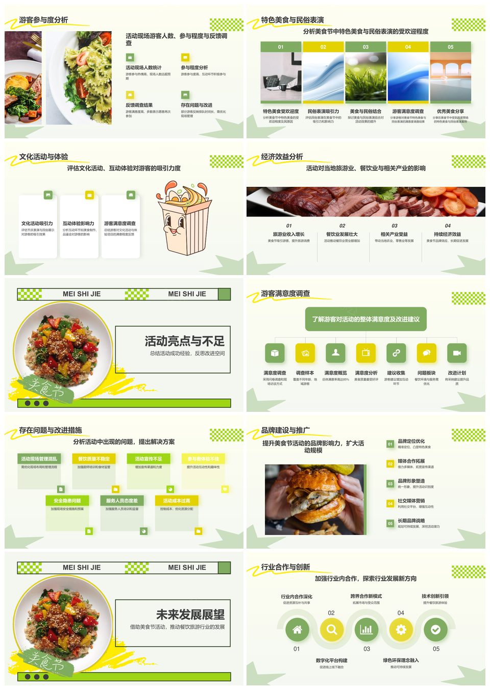 风云办公提供的美食节旅游经济文化活动成功总结汇报PPT模板,下载格式为pptx,一共20页,作品中文字及图均可以修改和编辑,图片更改请在作品中右键图片并更换,文字修改请直接点击文字进行修改。
