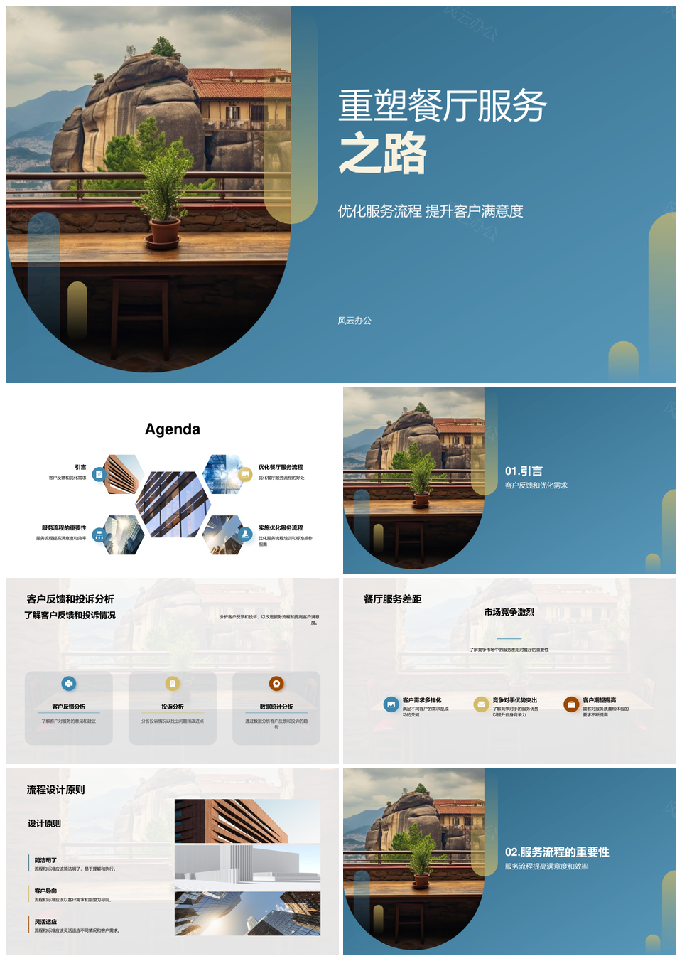 这是一张餐厅服务流程优化反馈分析新标准设计提升竞争PPT模板,包含餐厅服务、流程优化、反馈分析、新标准、设计、提升、竞争等主题内容,也可用作餐厅服务流程优化反馈、服务流程优化反馈分析、优化反馈分析新标准、反馈分析新标准设计、分析新标准设计提升、新标准设计提升竞争、餐厅服务流程优化、服务流程优化分析、优化反馈新标准、反馈分析设计提升、服务流程设计提升、分析新标准提升、优化分析设计竞争、餐厅服务新标准、设计提升竞争优化等PPT场景使用。 风云办公提供的餐厅服务流程优化反馈分析新标准设计提升竞争PPT模板,下载格式为pptx,一共21页,作品中文字及图均可以修改和编辑,图片更改请在作品中右键图片并更换,文字修改请直接点击文字进行修改。