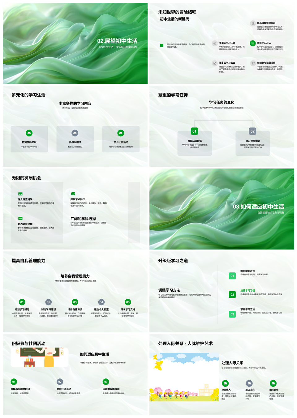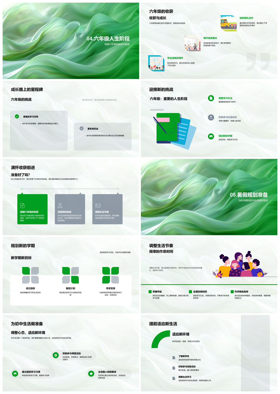 六年级学习成果初中准备自我管理团队合作基础新挑战PPT模板推荐