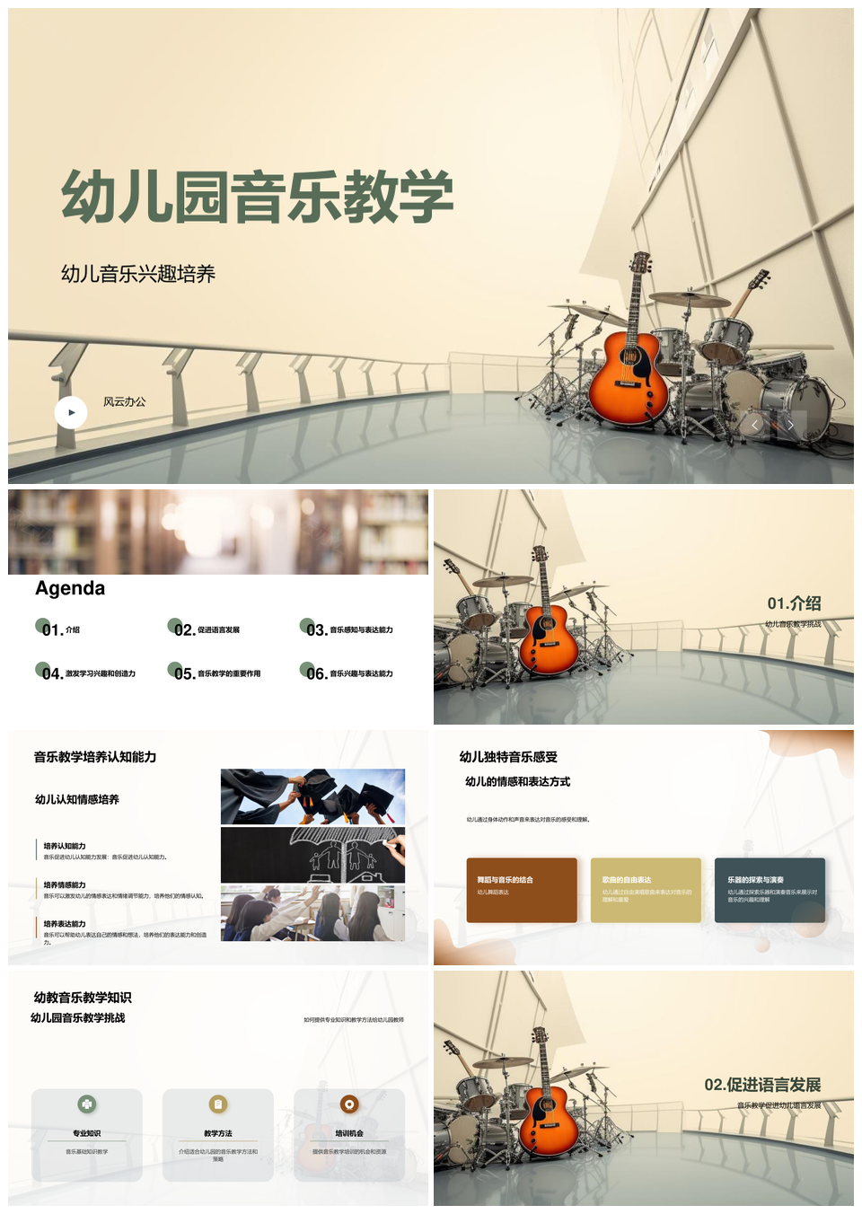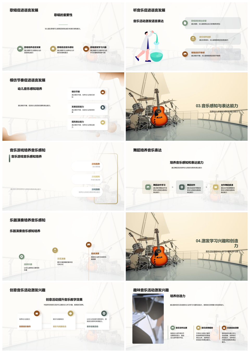 幼儿园音乐兴趣情感认知乐器促语言教学PPT模板推荐