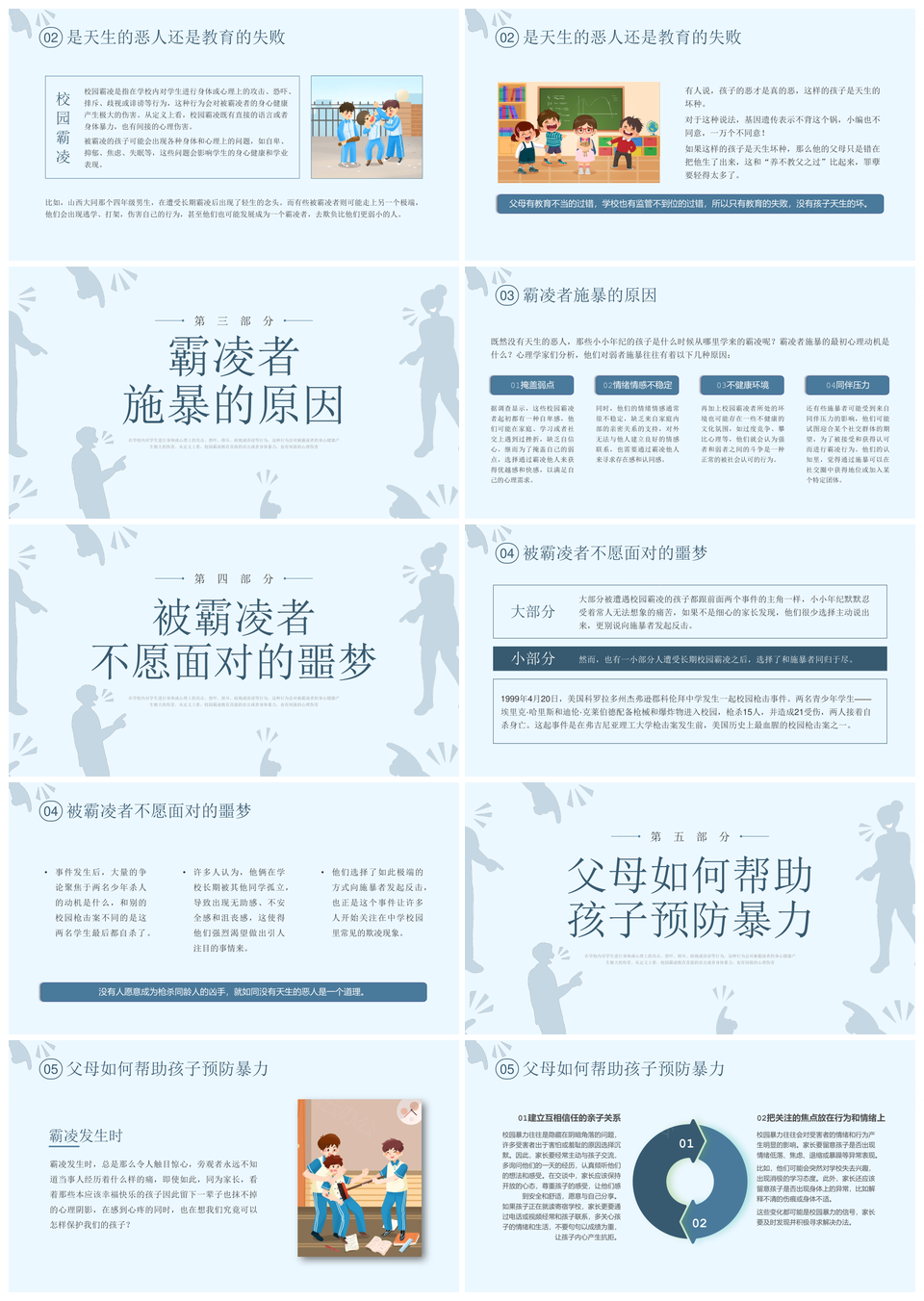 2025大学校园霸凌防治蓝色简约教育PPT模板推荐