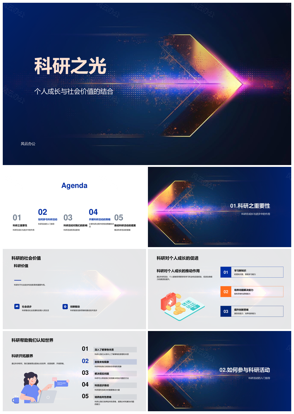 风云办公提供的科研之光驱动成长联结社会价值PPT模板,下载格式为pptx,一共23页,作品中文字及图均可以修改和编辑,图片更改请在作品中右键图片并更换,文字修改请直接点击文字进行修改。