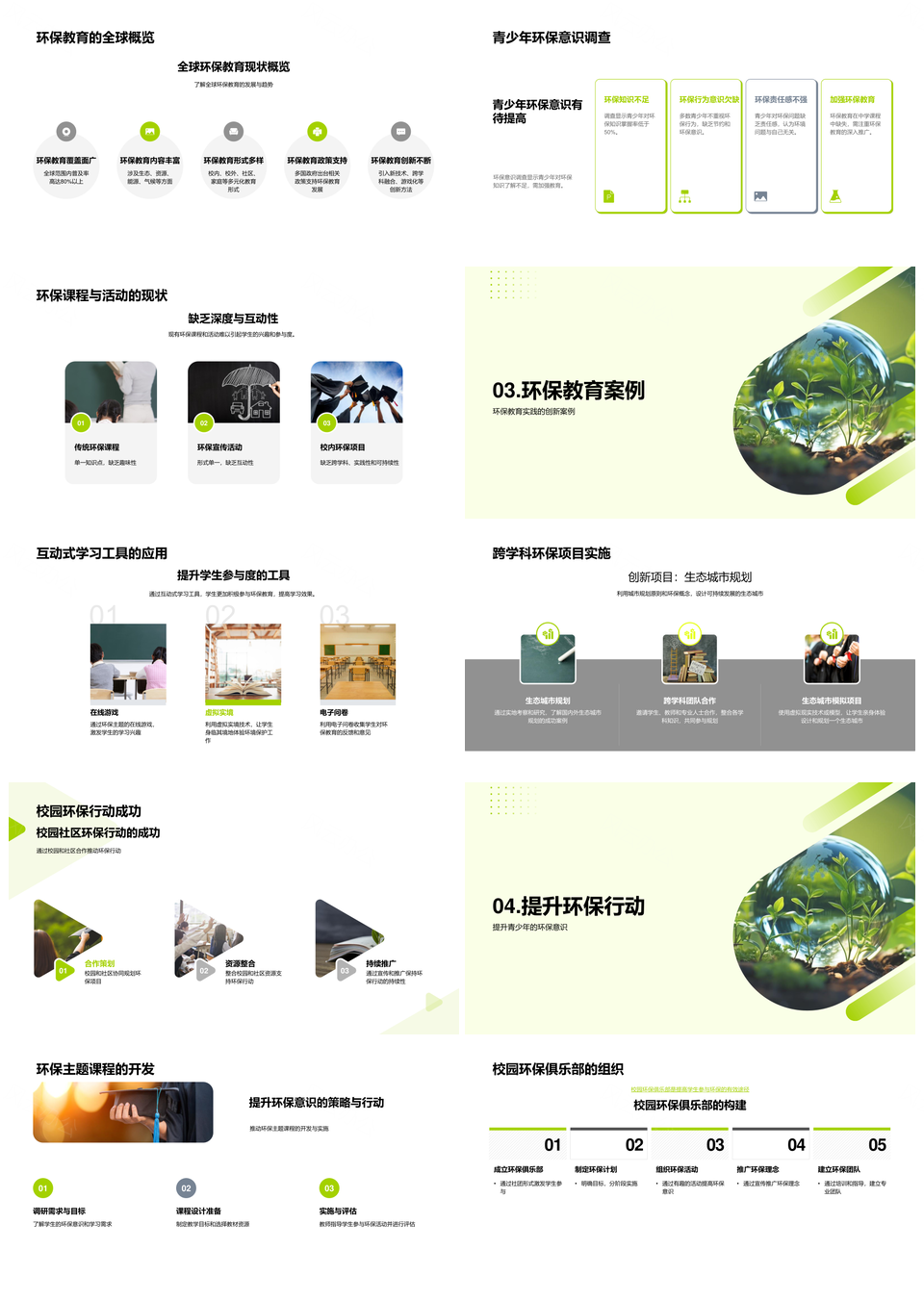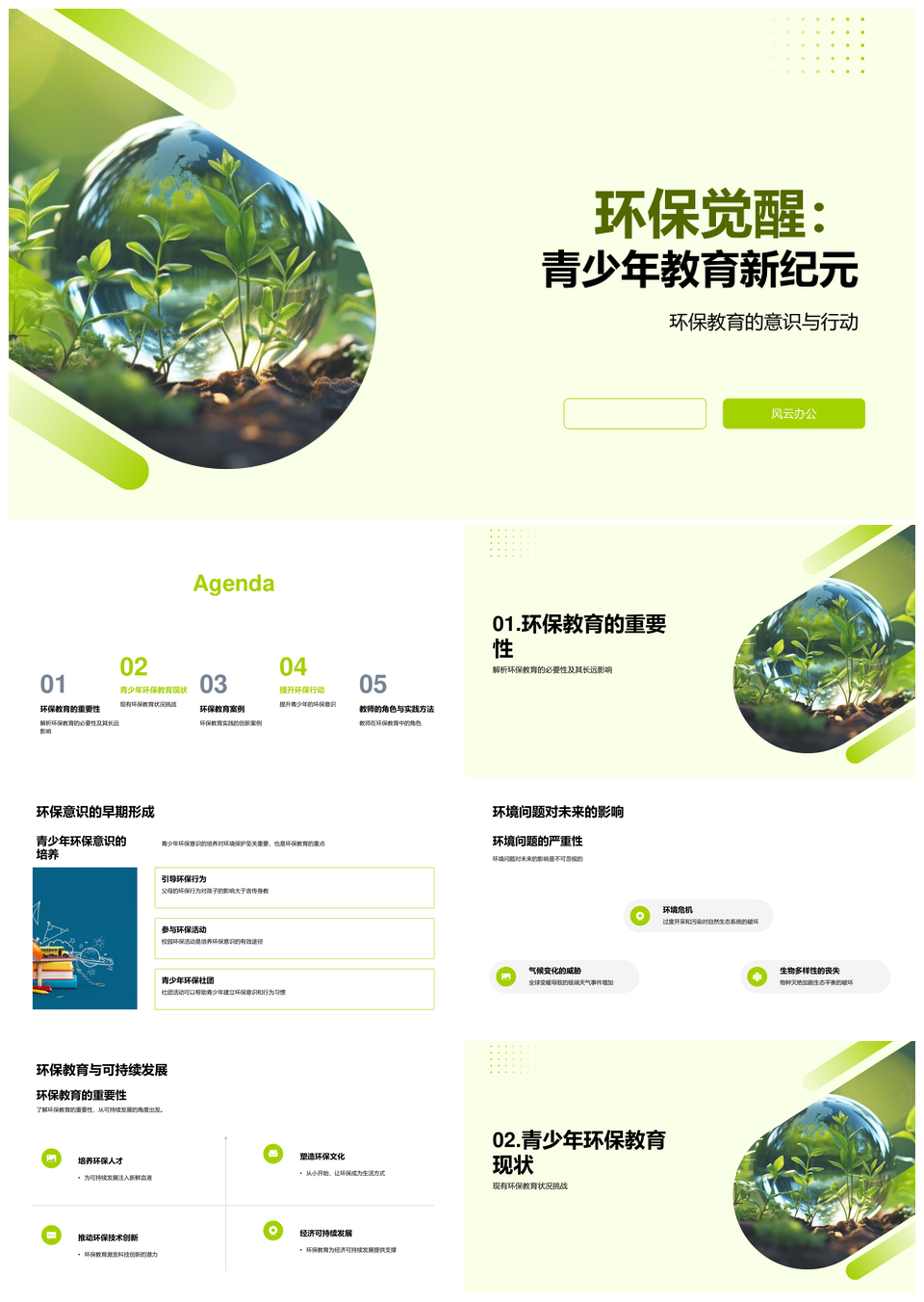 风云办公提供的青少年环保教育互动跨学科促可持续PPT模板,下载格式为pptx,一共23页,作品中文字及图均可以修改和编辑,图片更改请在作品中右键图片并更换,文字修改请直接点击文字进行修改。
