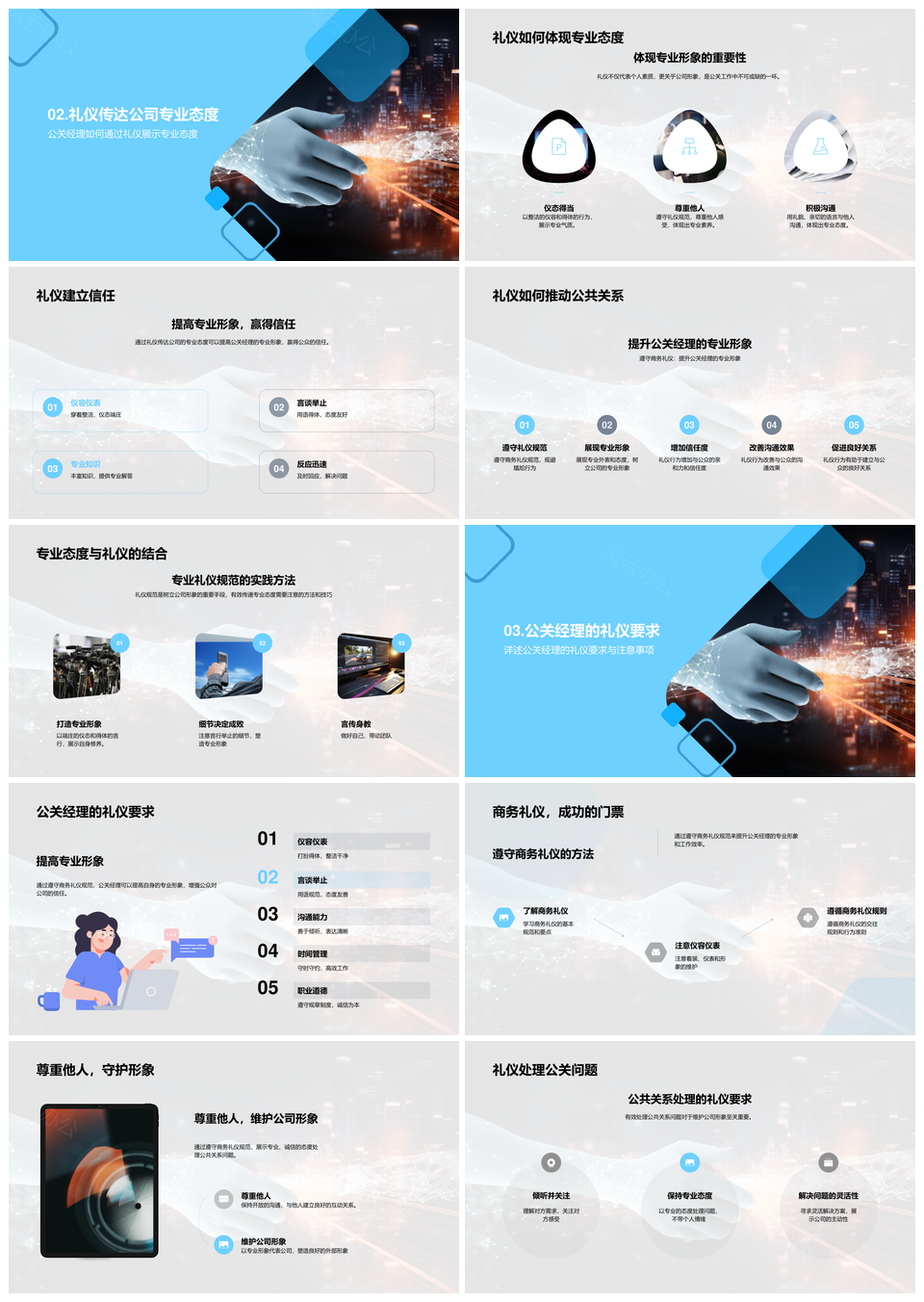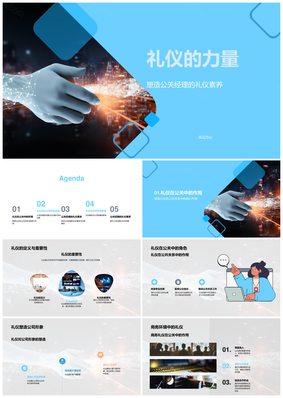 风云办公提供的公关经理商务礼仪塑造公司形象PPT模板,下载格式为pptx,一共28页,作品中文字及图均可以修改和编辑,图片更改请在作品中右键图片并更换,文字修改请直接点击文字进行修改。