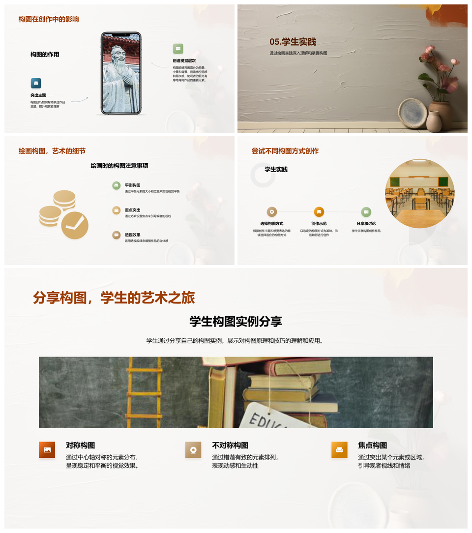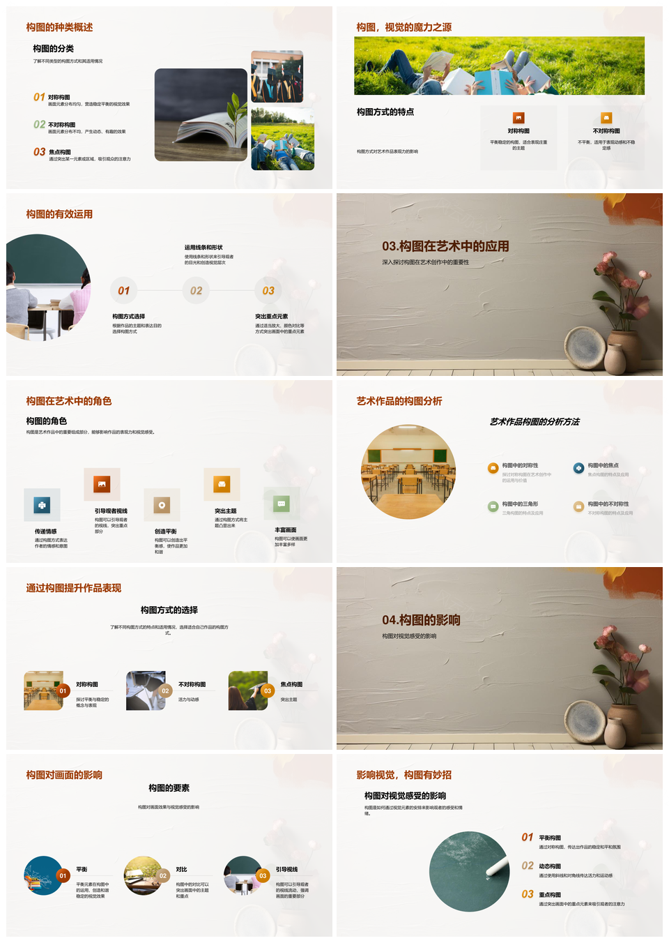 风云办公提供的掌握构图艺术秘密原理方式与画笔影响PPT模板,下载格式为pptx,一共23页,作品中文字及图均可以修改和编辑,图片更改请在作品中右键图片并更换,文字修改请直接点击文字进行修改。