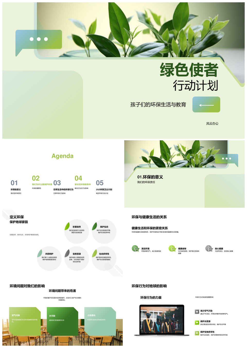 风云办公提供的绿色使者环保教育分类节能生活行动PPT模板,下载格式为pptx,一共28页,作品中文字及图均可以修改和编辑,图片更改请在作品中右键图片并更换,文字修改请直接点击文字进行修改。