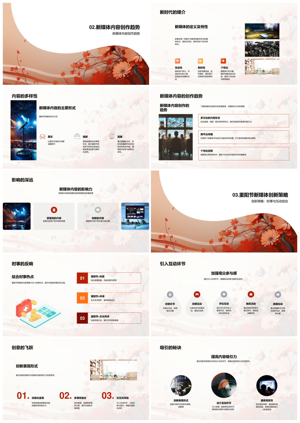 这是一张重阳节新媒体菊花互动内容创新策划PPT模板,包含重阳节、新媒体、菊花、互动内容、创新策划等主题内容,也可用作重阳节新媒体菊花互动、新媒体菊花互动内容、菊花互动内容创新、互动内容创新策划、重阳节新媒体互动、新媒体菊花内容、菊花互动创新、内容创新策划、重阳节菊花互动、新媒体互动内容、互动内容创新、创新策划内容、重阳节新媒体、新媒体菊花、菊花互动等PPT场景使用。