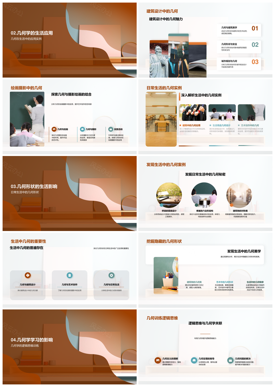 风云办公提供的几何生活应用建筑绘画与空间思维训练PPT模板,下载格式为pptx,一共24页,作品中文字及图均可以修改和编辑,图片更改请在作品中右键图片并更换,文字修改请直接点击文字进行修改。