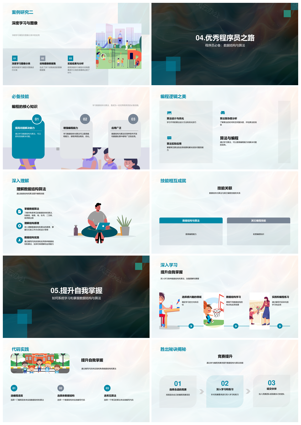 这是一张编程技能提升数据结构算法存储问题解决PPT模板,包含编程技能、 提升、 数据结构、 算法、 存储、 问题解决等主题内容,也可用作编程技能提升数据结构、技能提升数据结构算法、提升数据结构算法存储、数据结构算法存储问题解决、编程技能提升、技能提升数据结构、提升数据结构算法、数据结构算法存储、算法存储问题解决、编程技能、技能提升、提升数据结构、数据结构算法、算法存储、存储问题解决等PPT场景使用。 风云办公提供的编程技能提升数据结构算法存储问题解决PPT模板,下载格式为pptx,一共29页,作品中文字及图均可以修改和编辑,图片更改请在作品中右键图片并更换,文字修改请直接点击文字进行修改。